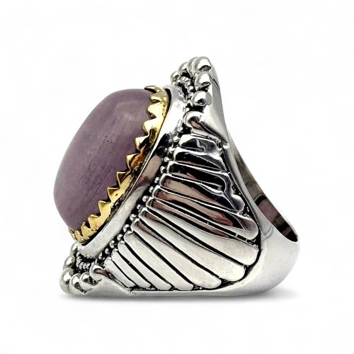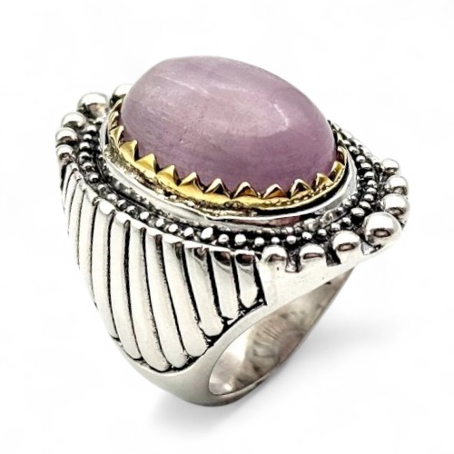 Bague en argent 925 avec pierre semi-précieuse ou naturelle sertie de laiton