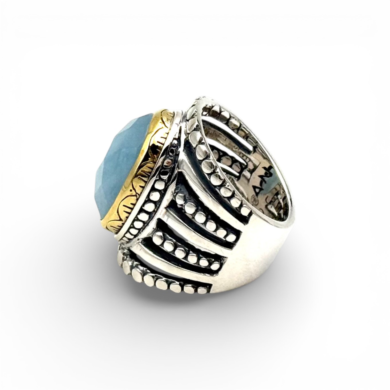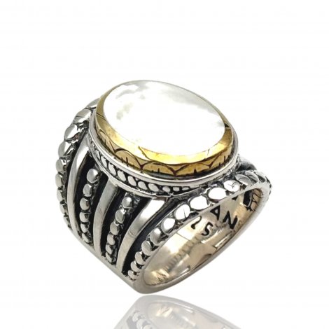 925 silver ring with semi-precious stone set in brass