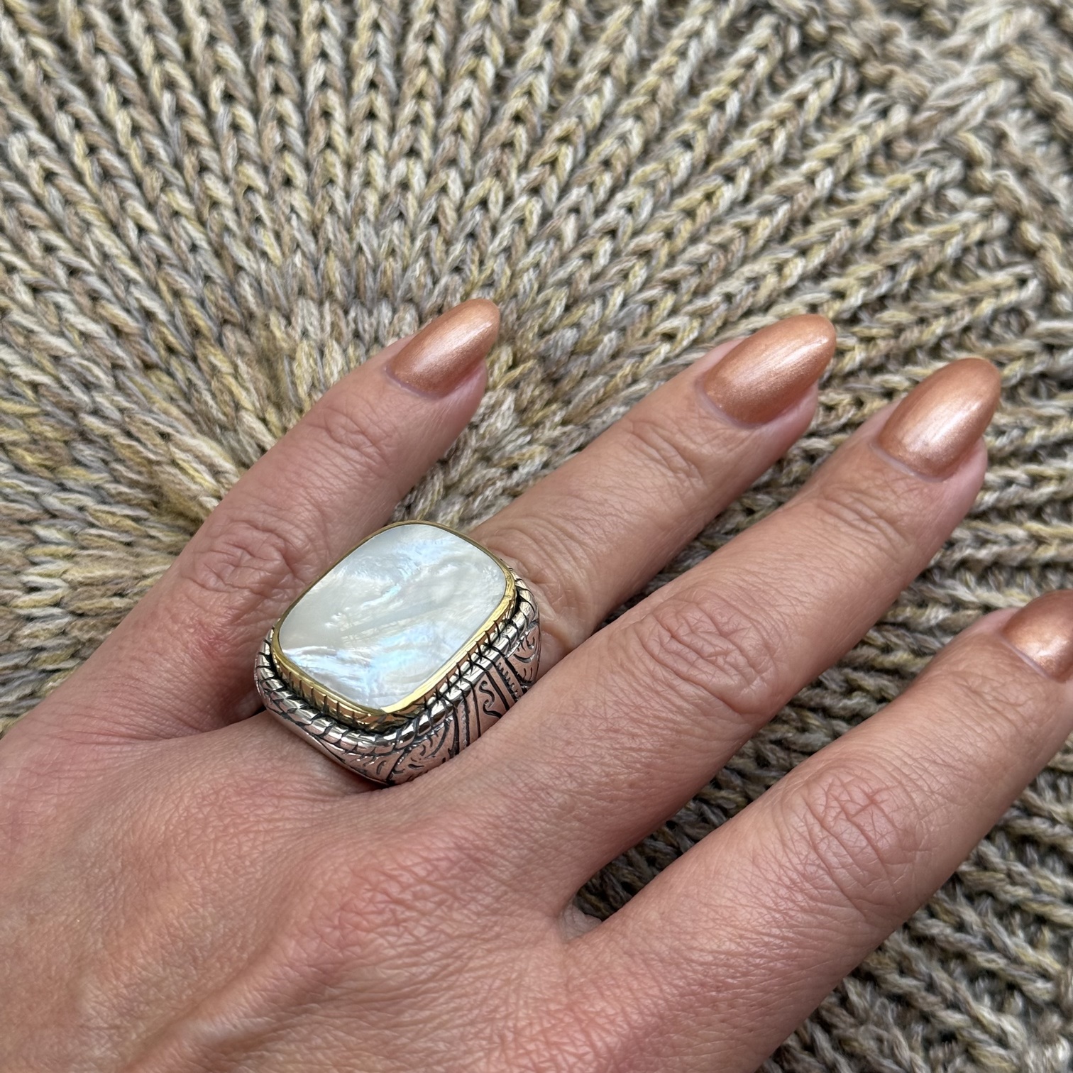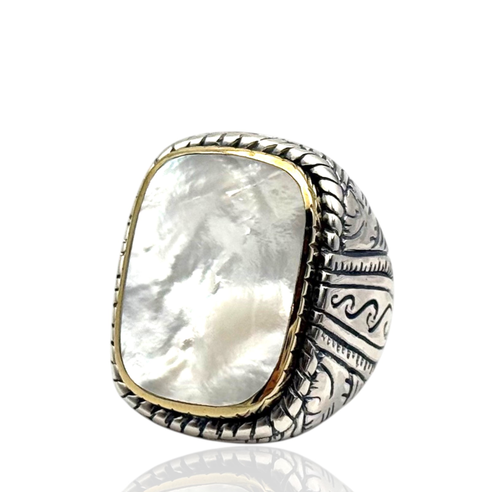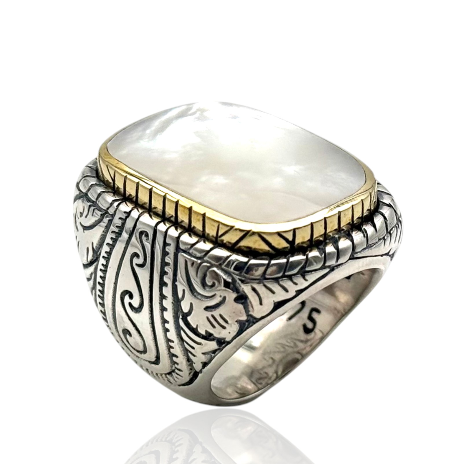 Bague en argent 925 avec pierre semi précieuse sertie de laiton