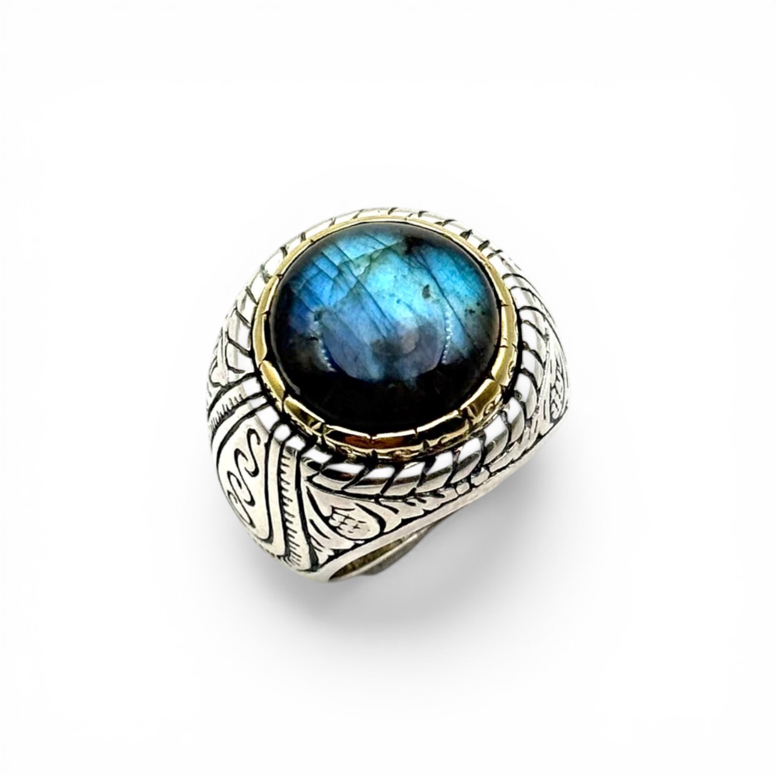 Bague Argent 925, Laiton et Labradorite