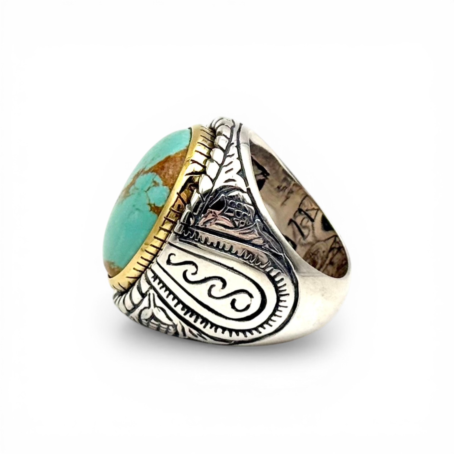 Bague Argent 925, Laiton et turquoise du Chili