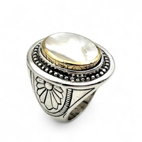Bague en Argent 925 avec pierre de lune bleue sertie de laiton.