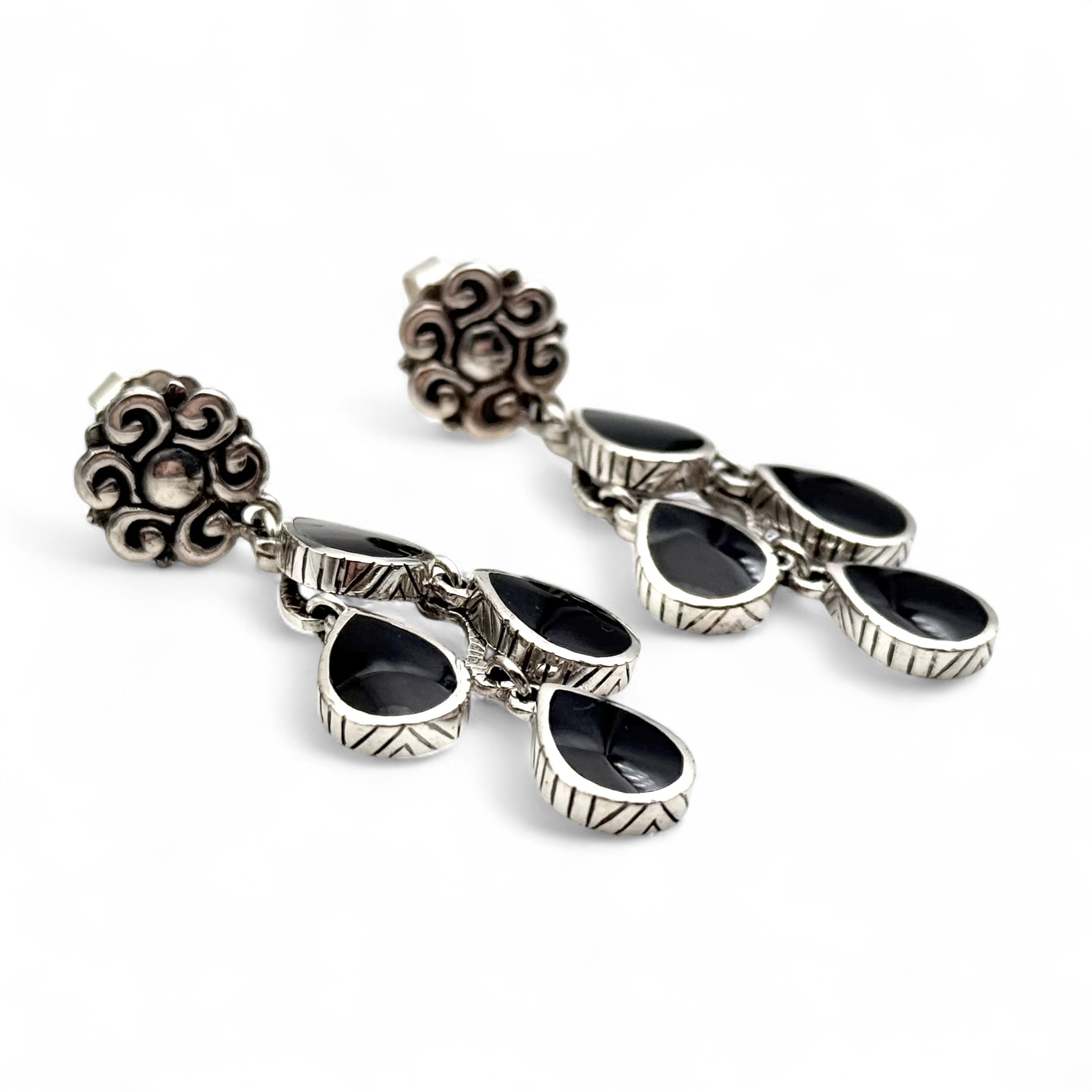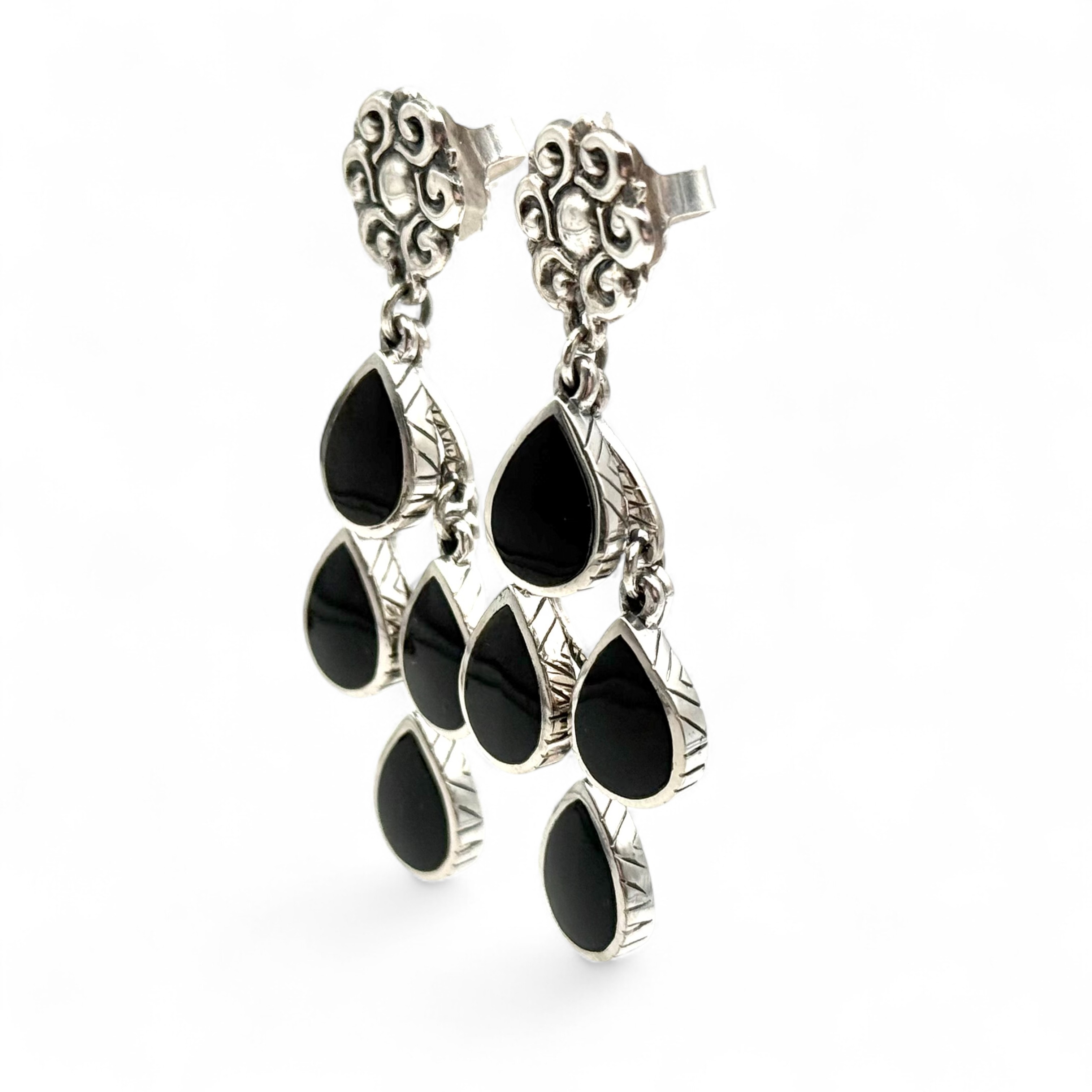 Boucles d'oreilles en argent 925 composées de 4 pampilles serties de nacres noires