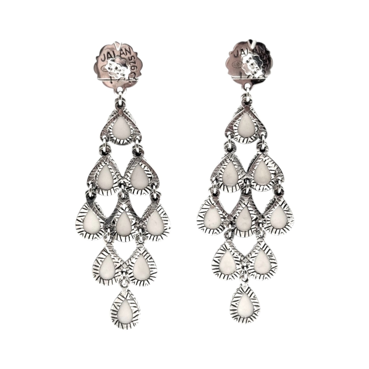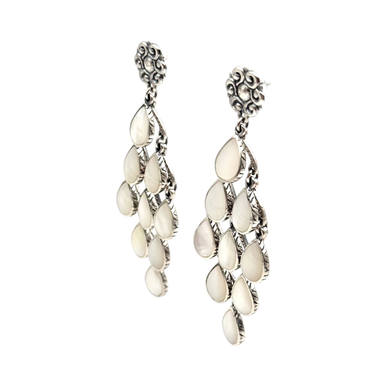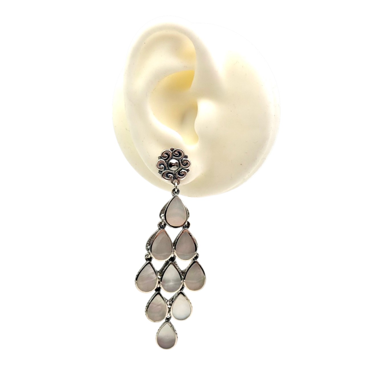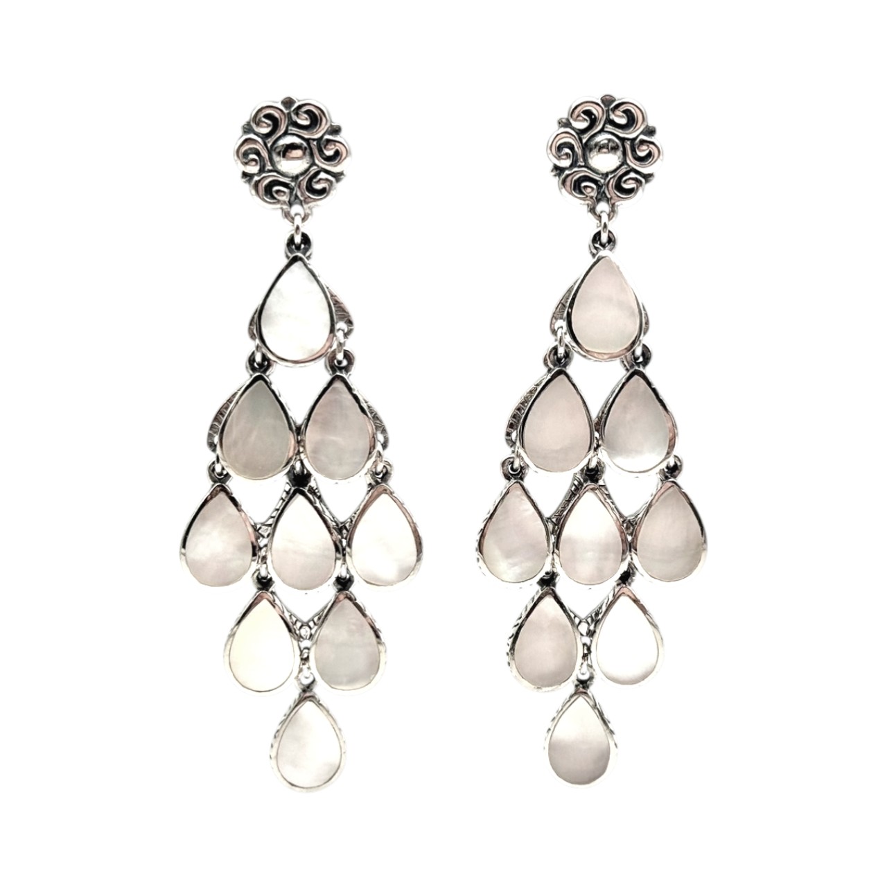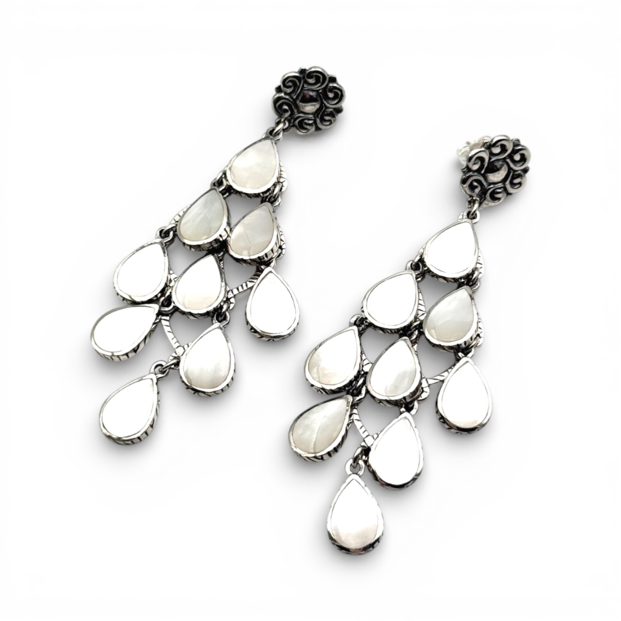 Boucles d'oreilles en argent 925 composées de 9 gouttes serties de nacre blanche