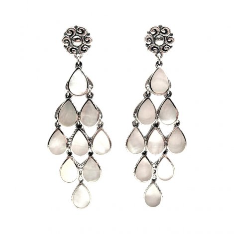 Boucles d'oreilles en argent 925 composées de 9 gouttes serties de pierres naturelles