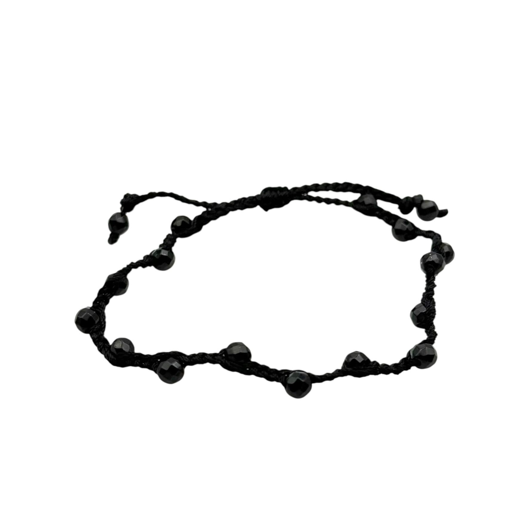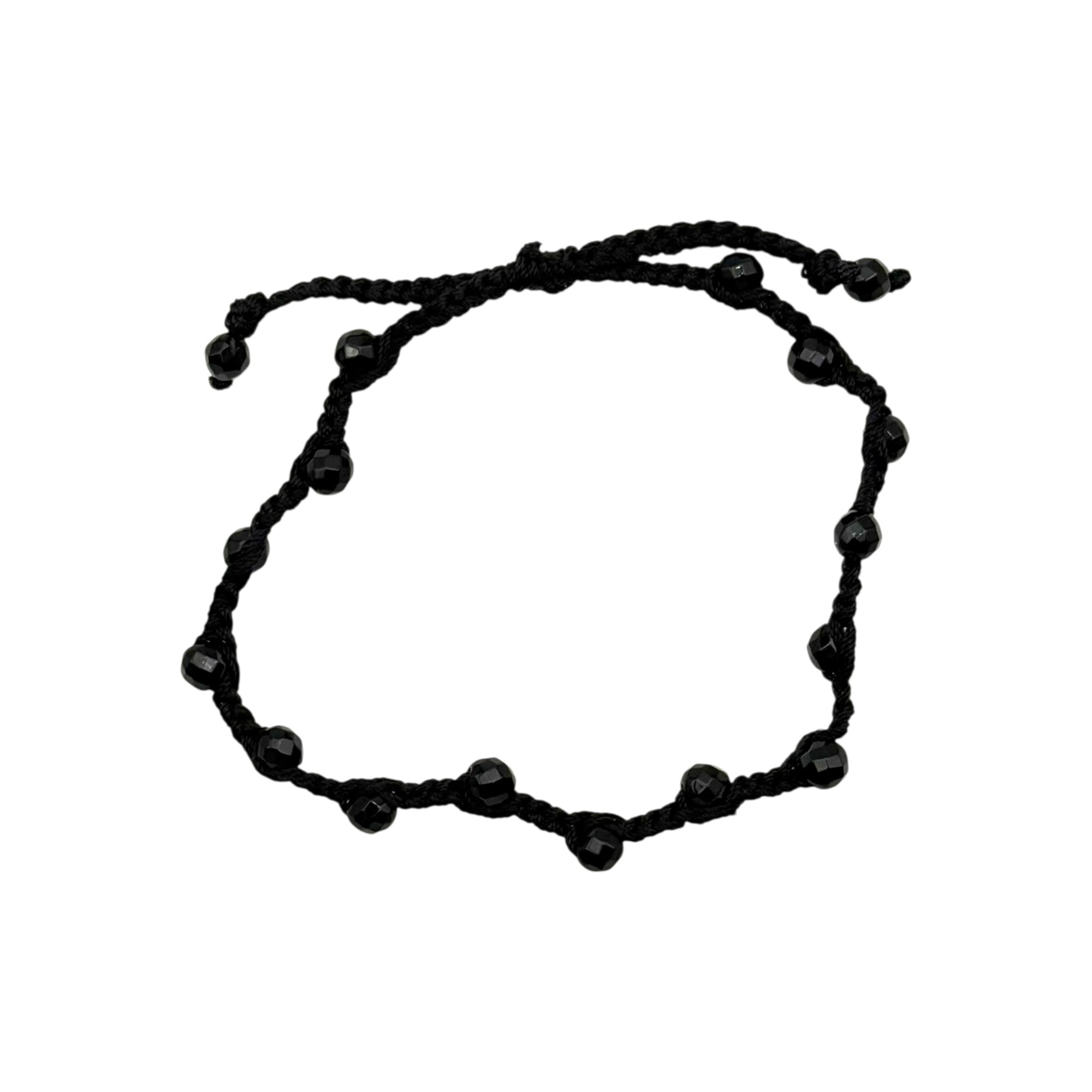 Bracelet composé de perles d'onyx facettées sur lien tressé