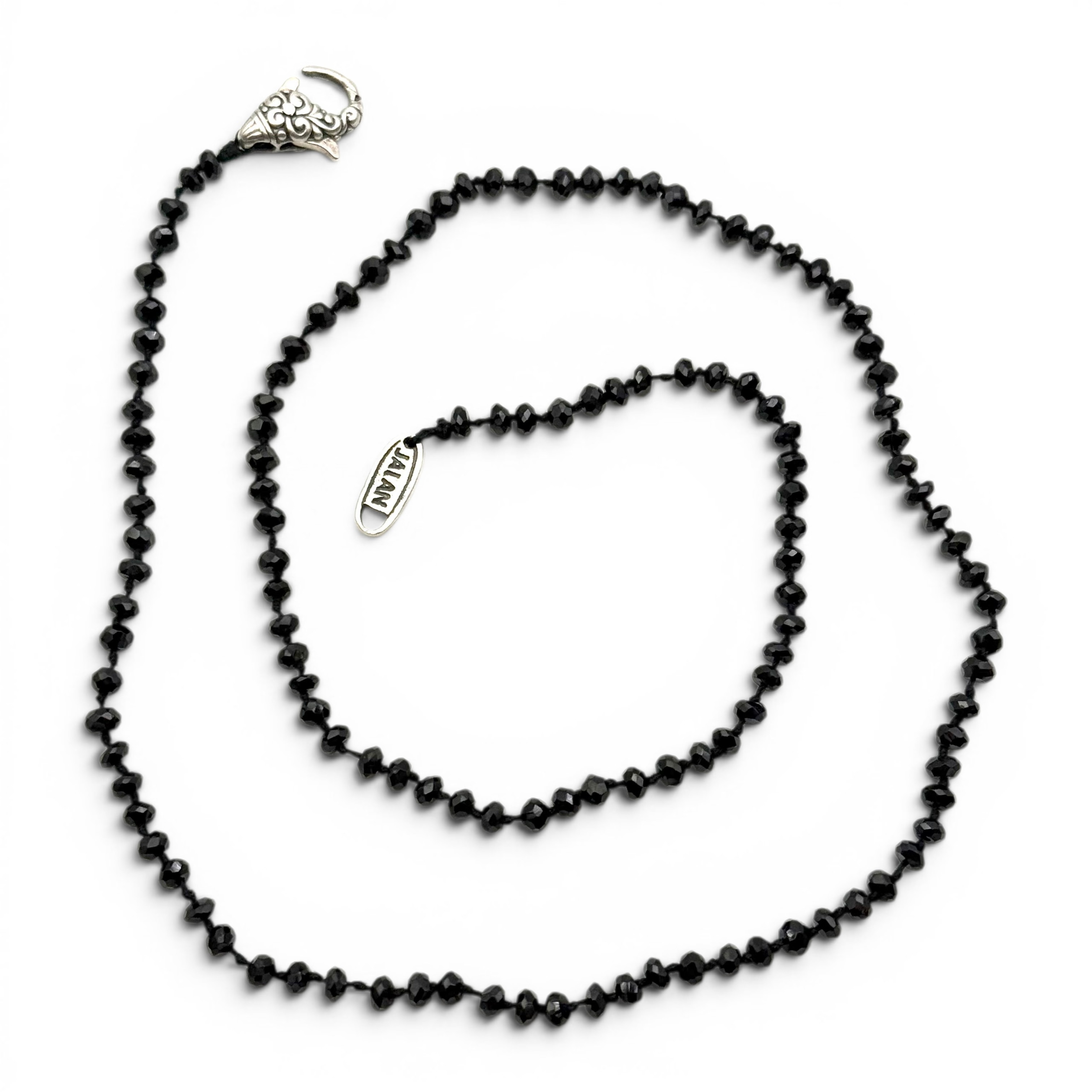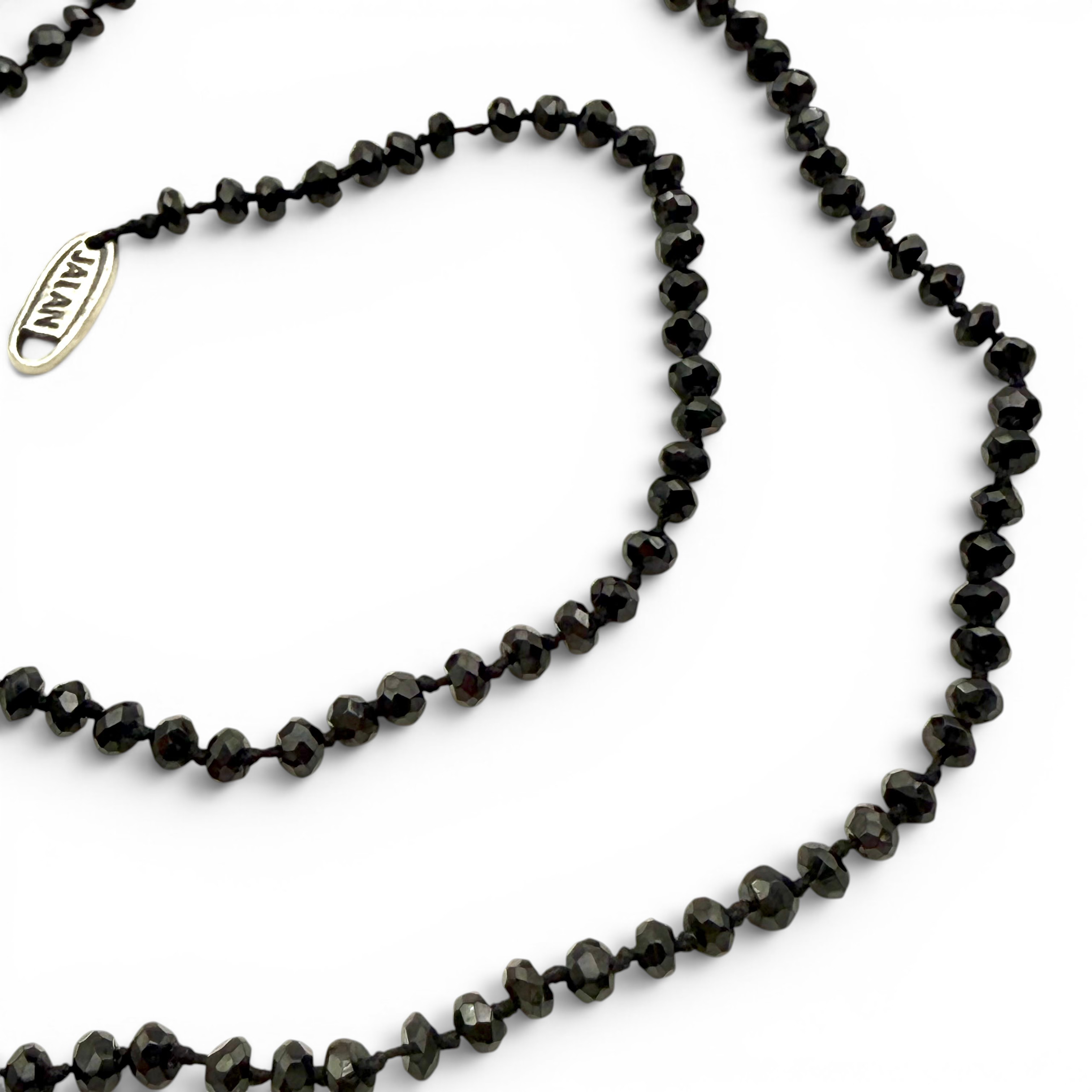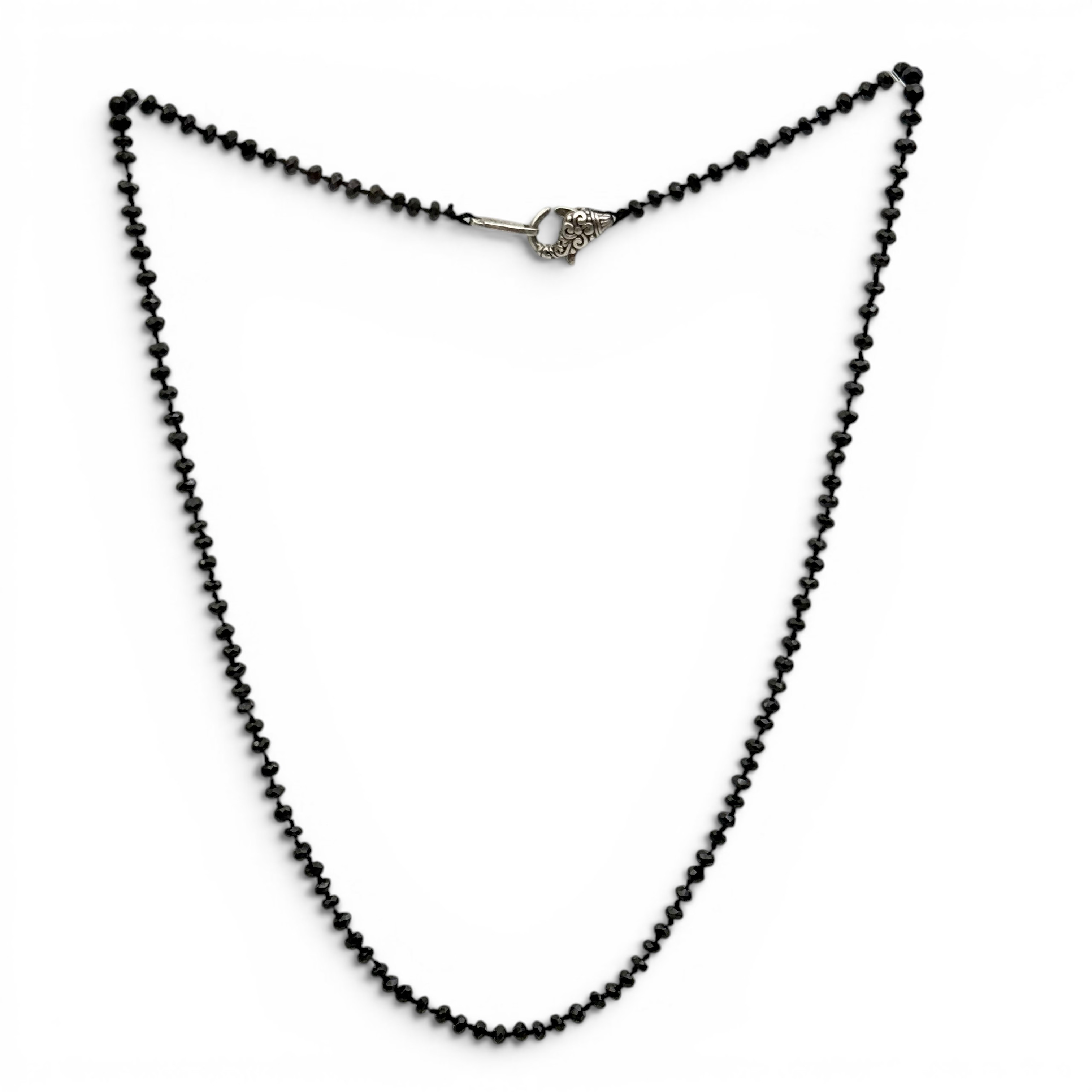 Collier sur fil noué composé de perles d'onyx facettées de 3mm de diamètre.