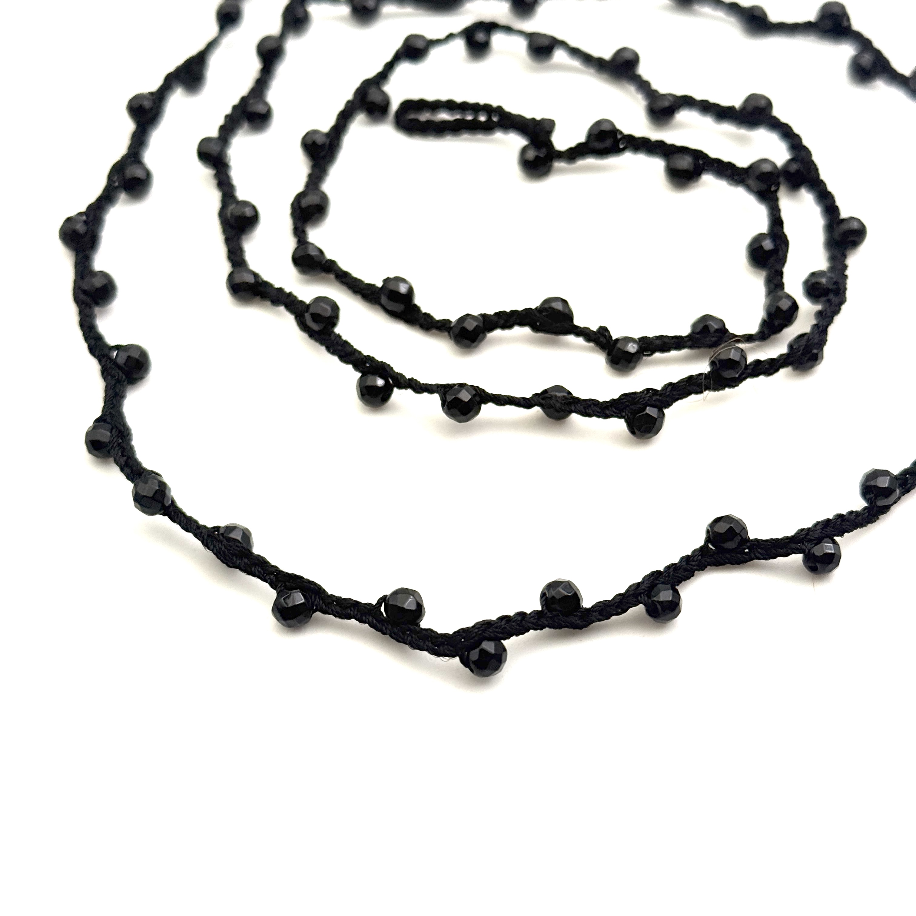 Collier sur lien tressé composé de perles d'onyx facettées de 4mm de diamètre