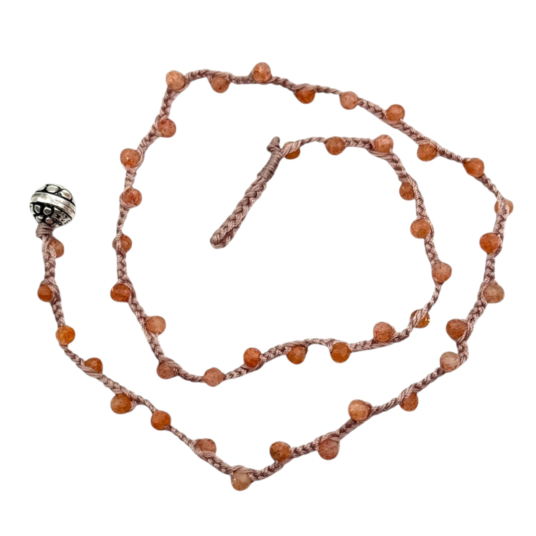 Collier sur lien tressé composé de perles de pierre de sable facettées de 3mm de diamètre