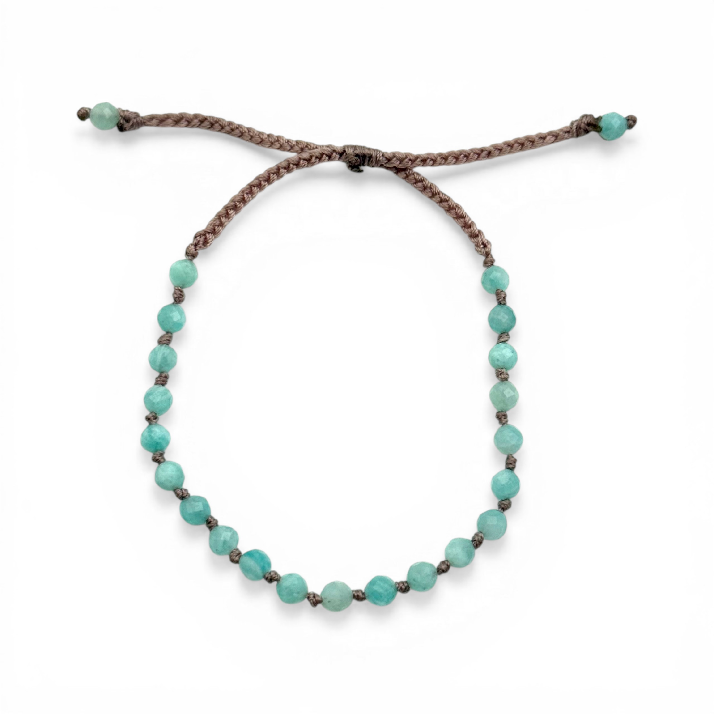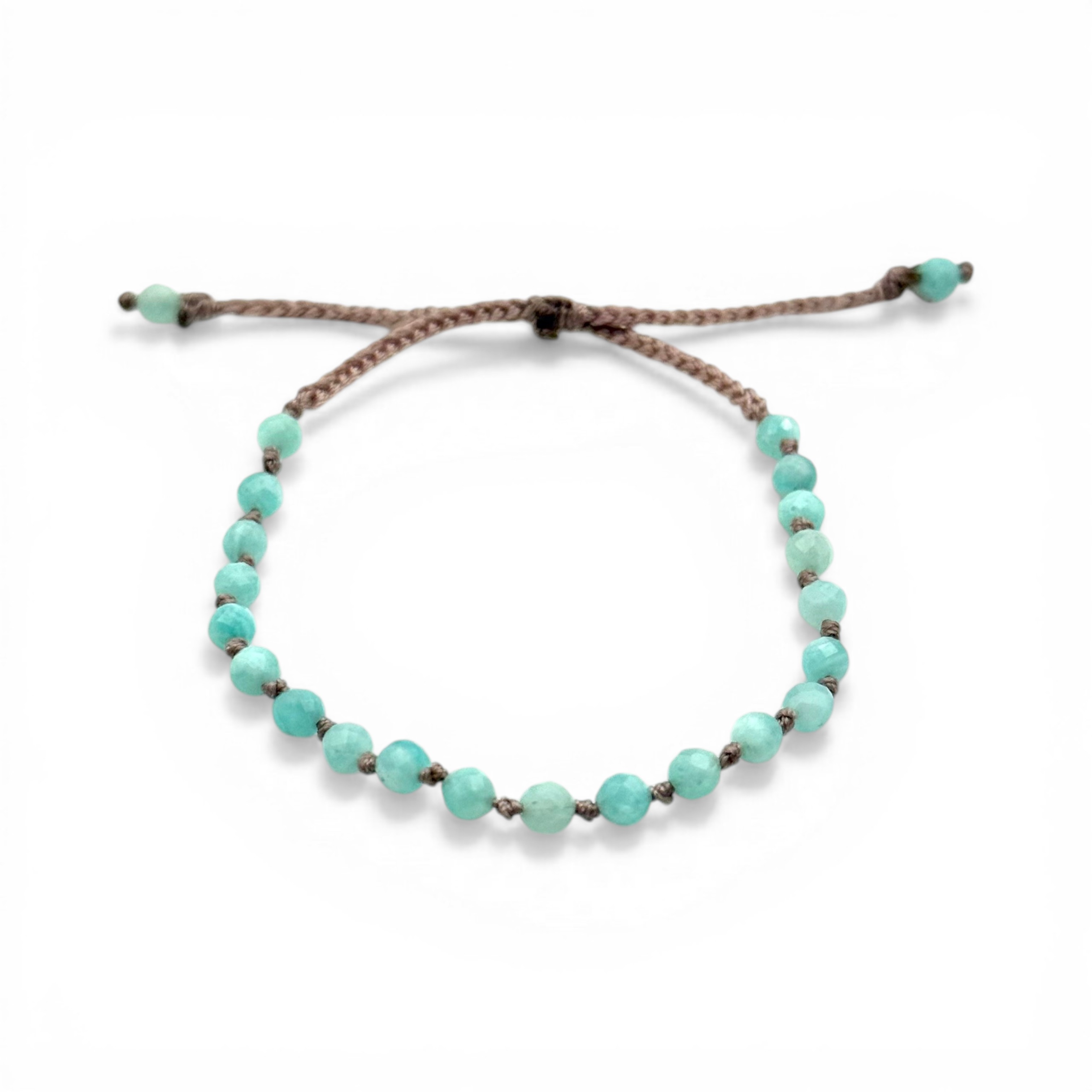 Bracelet ajustable sur fil noué composé de perles d'amazonite facettées de 4mm