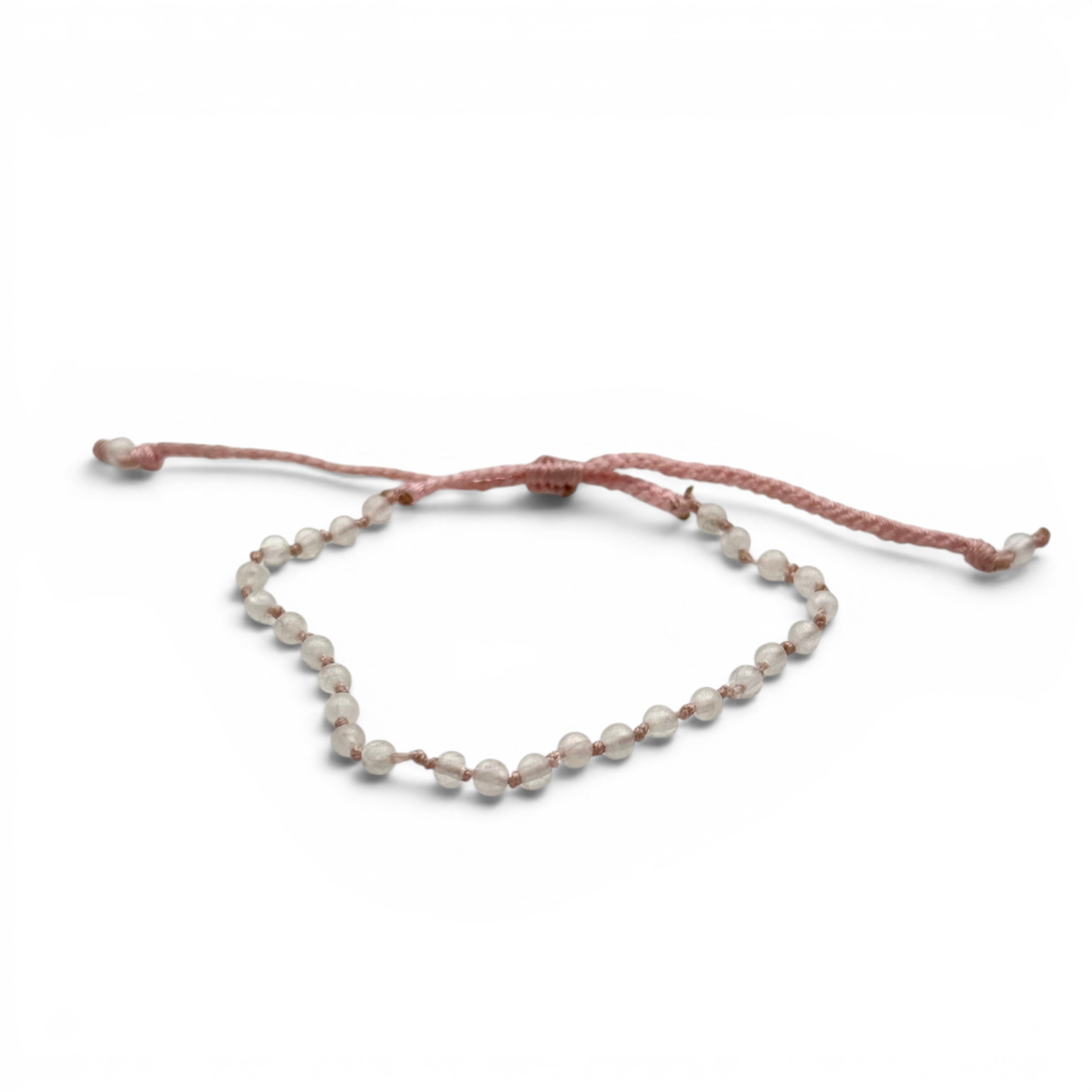 Bracelet ajustable sur fil noué composé de perles de quartz rose de 3mm
