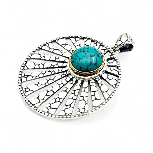 Pendentif en argent 925 rond avec turquoise sertie de laiton