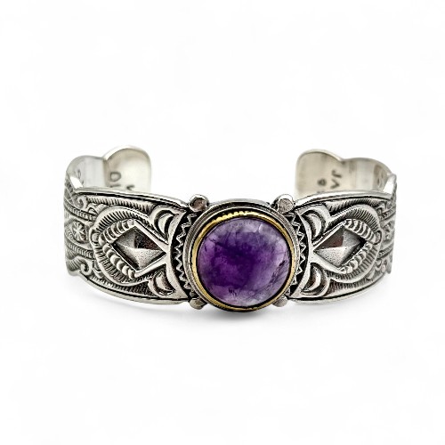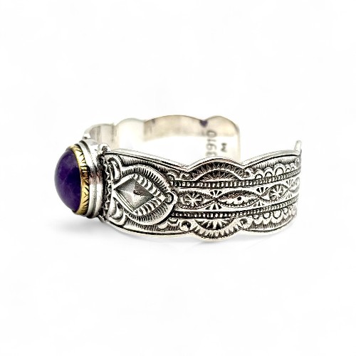 Bracelet manchette en argent 925 avec Améthyste sertie de Laiton