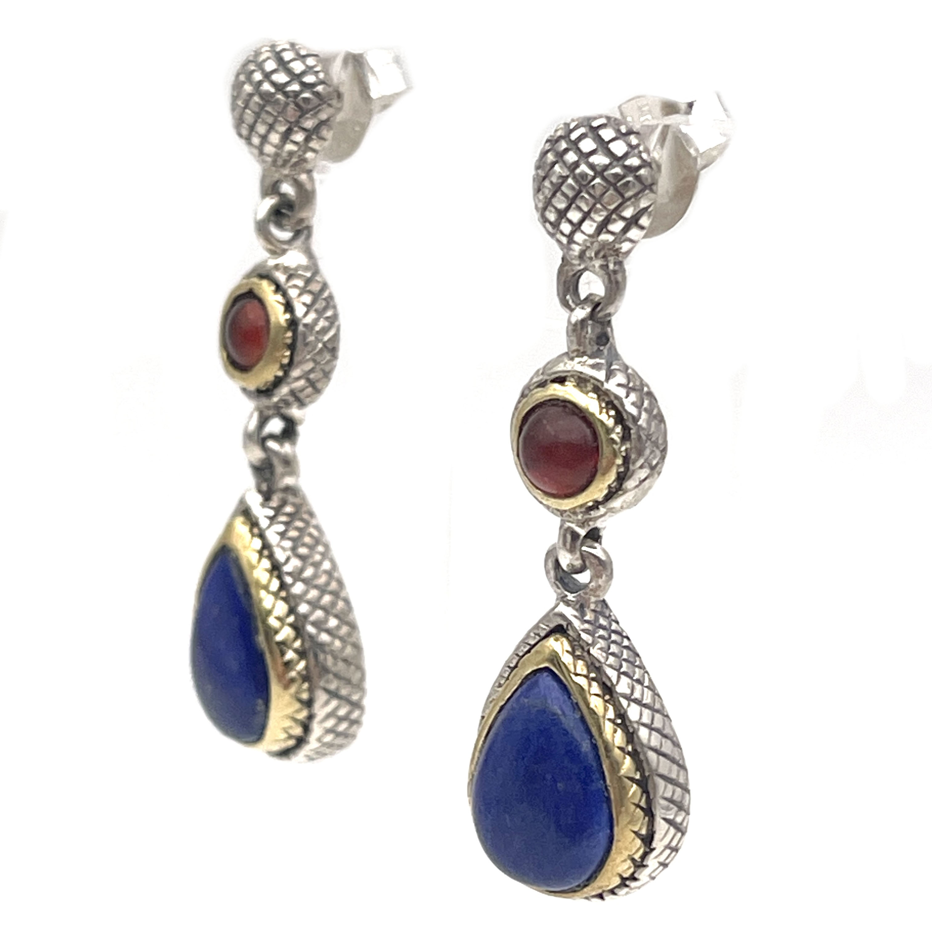 Boucles d'Oreilles en Argent 925 avec pierres semi-précieuses serties de Laiton