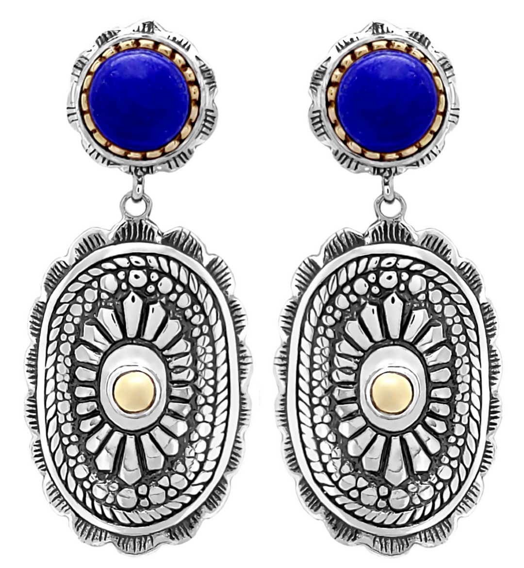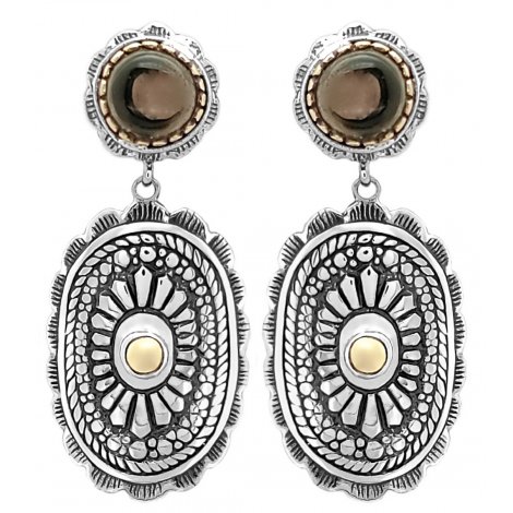 Boucles d'oreilles en Argent 925 avec pierre semi-précieuse sertie de Laiton sur la partie haute et petit centre en Laiton sur la partie basse.