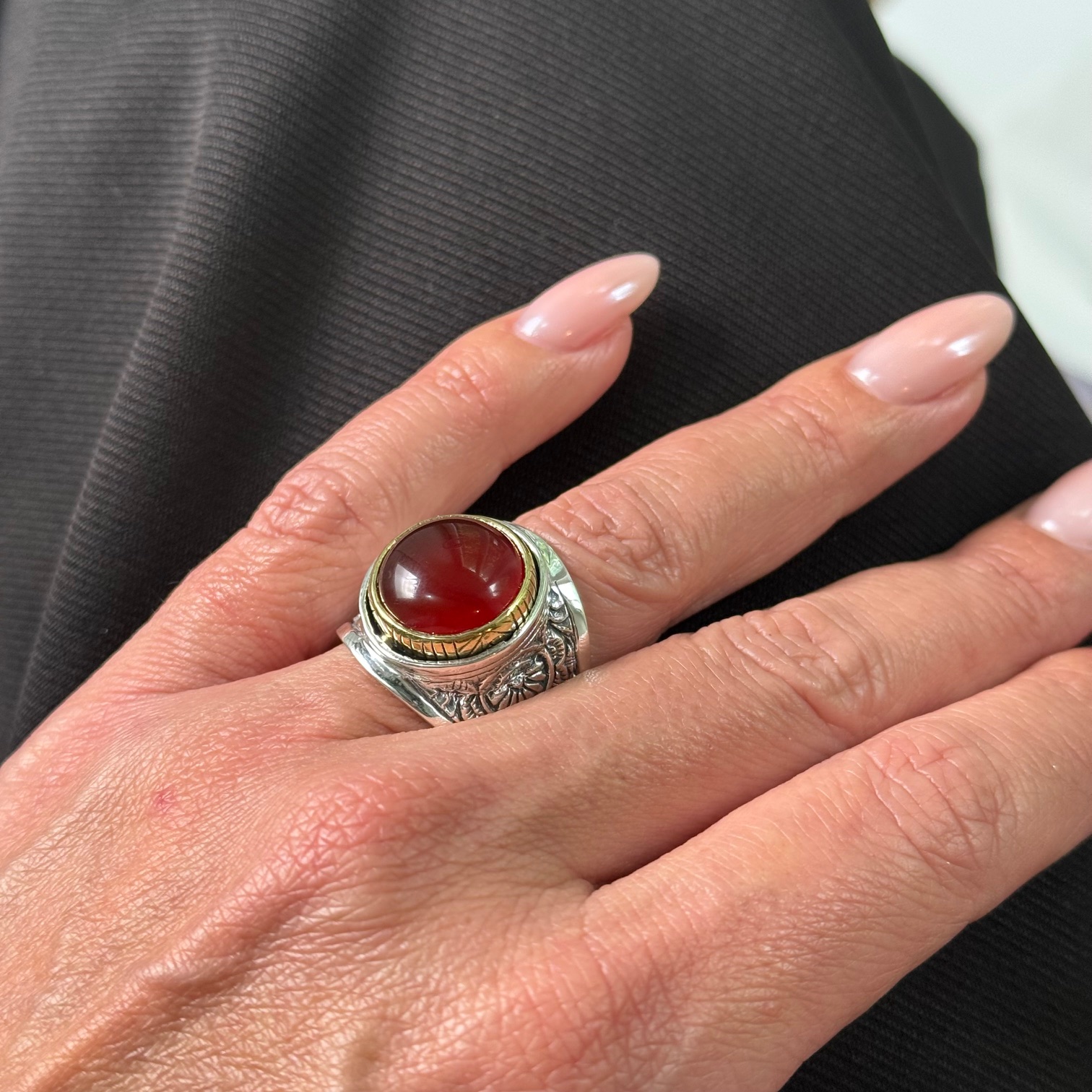 Bague en argent 925 avec pierre semi-précieuses sertie de laiton