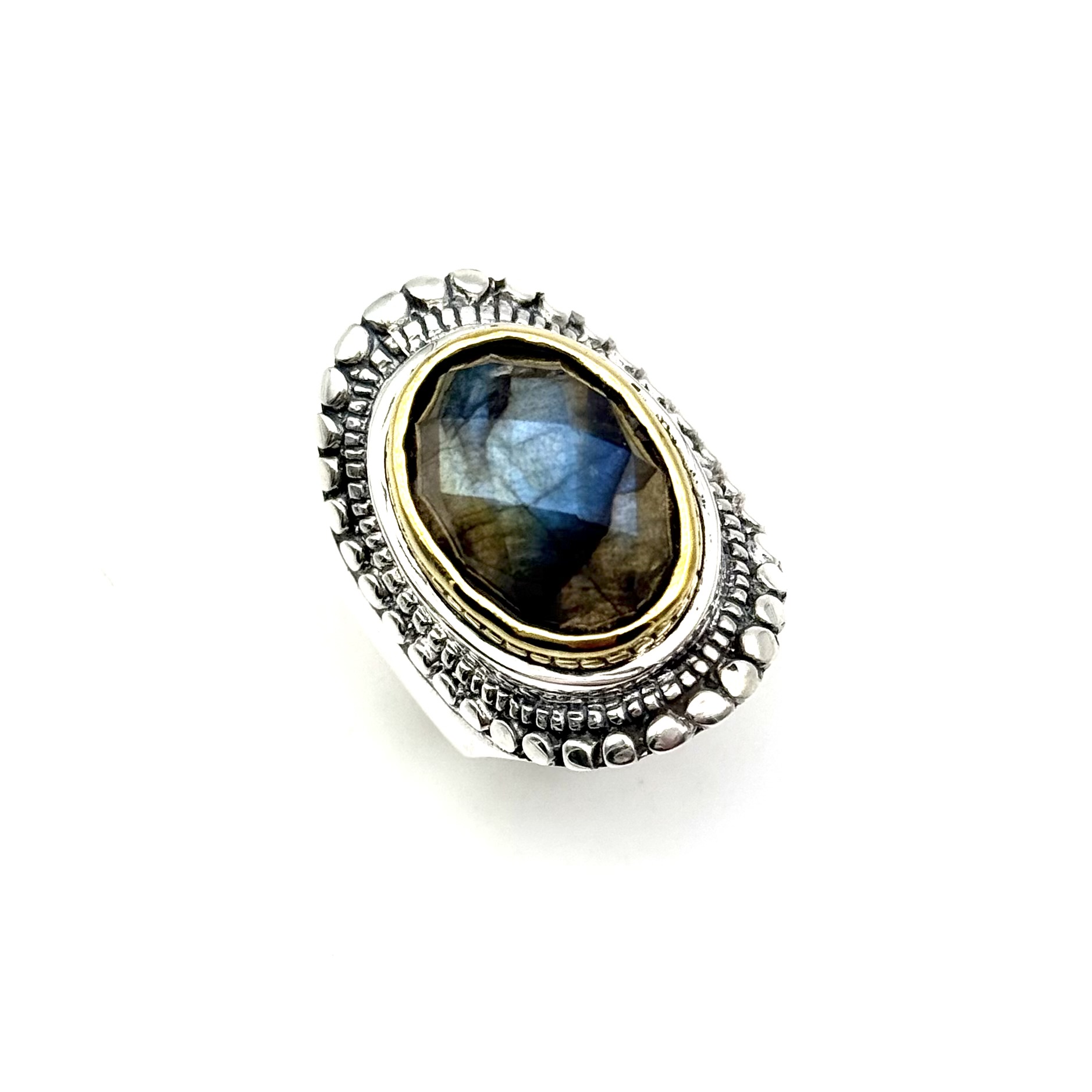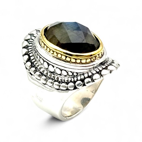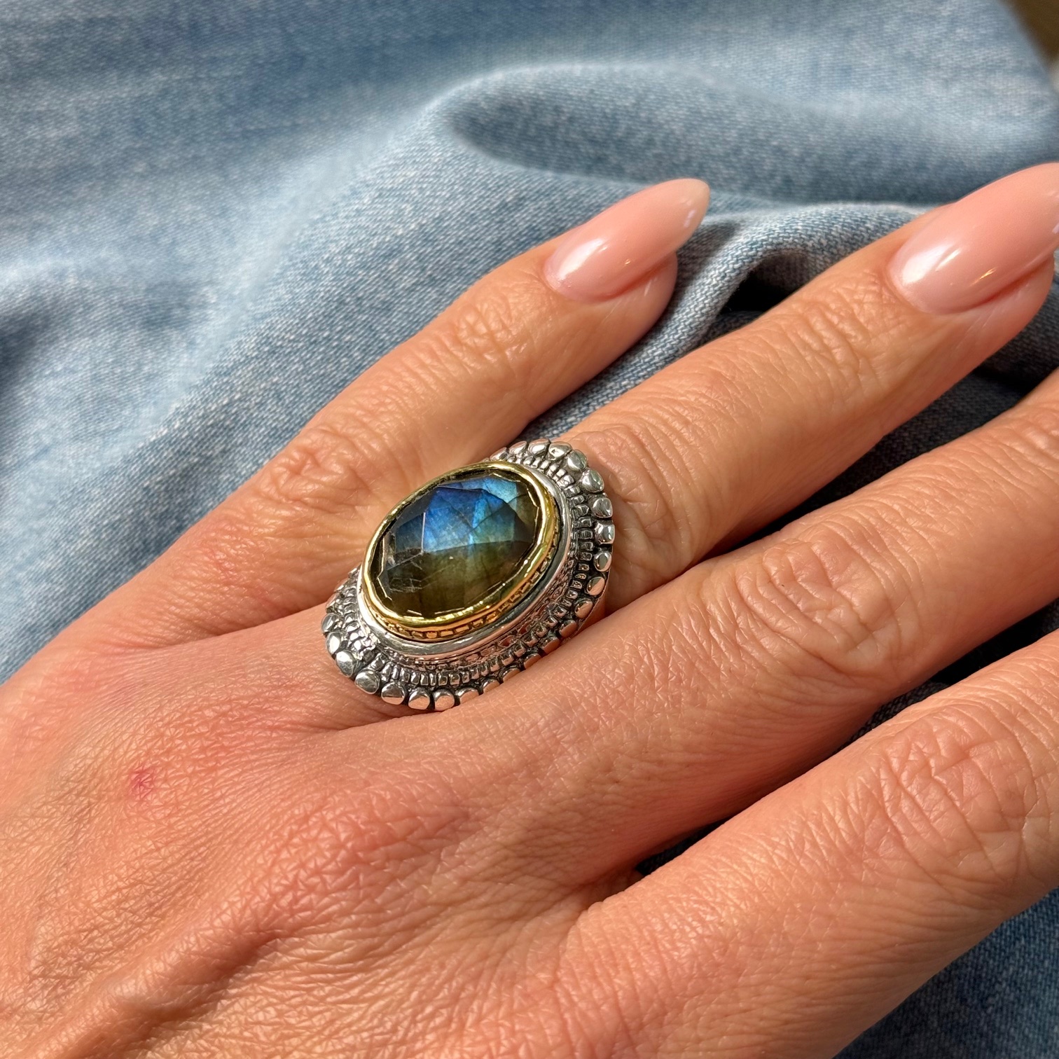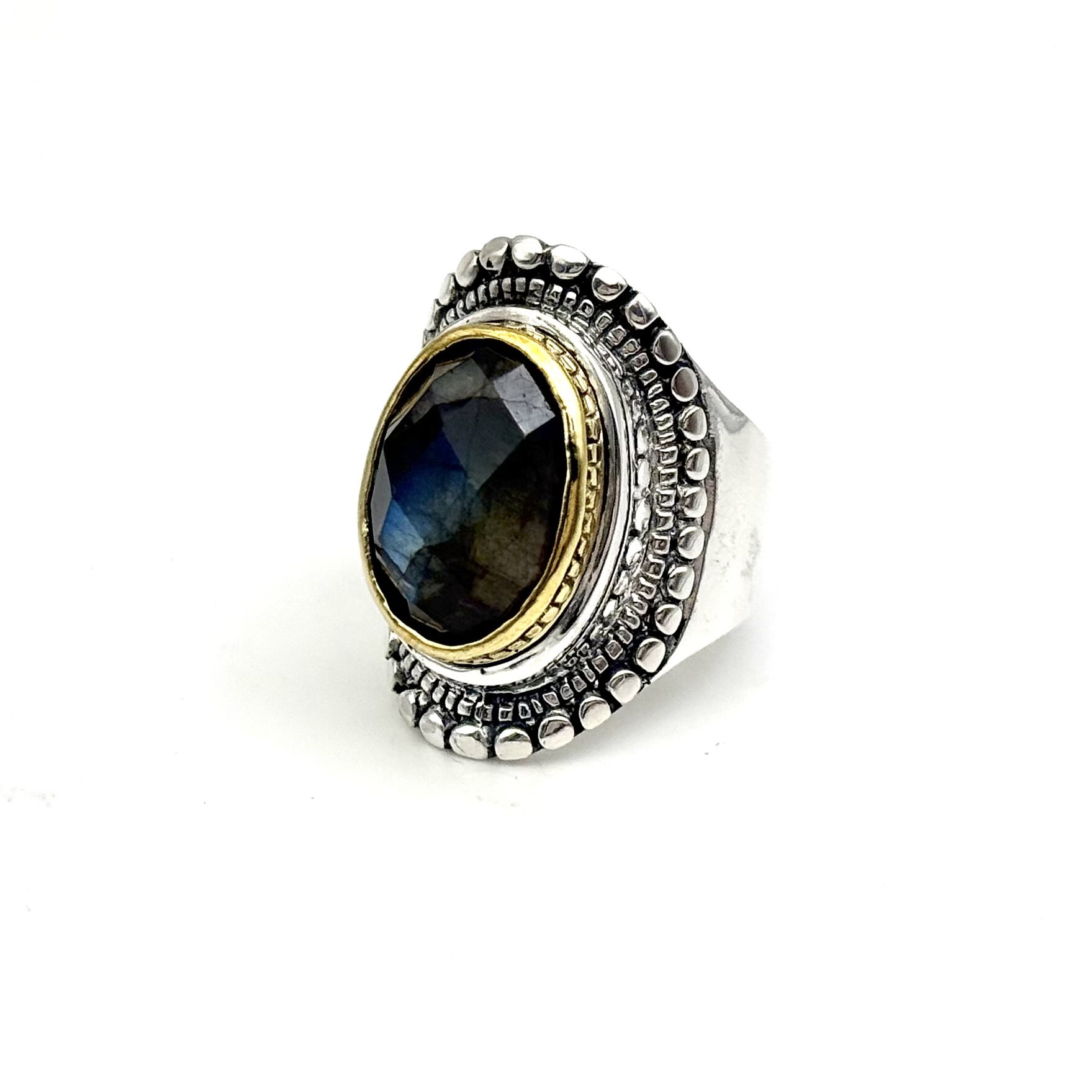 Bague en argent 925 avec pierre semi-précieuse sertie de laiton