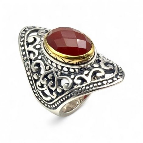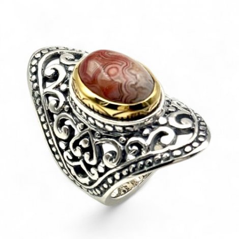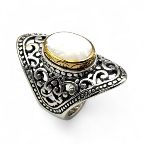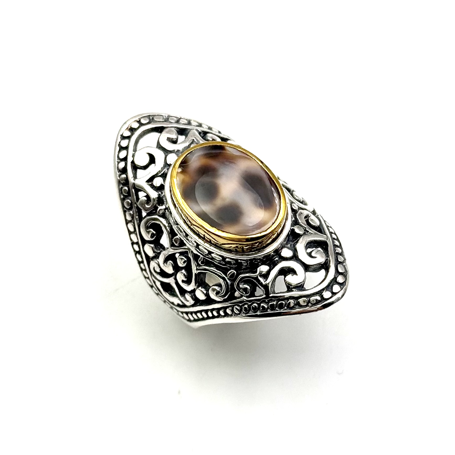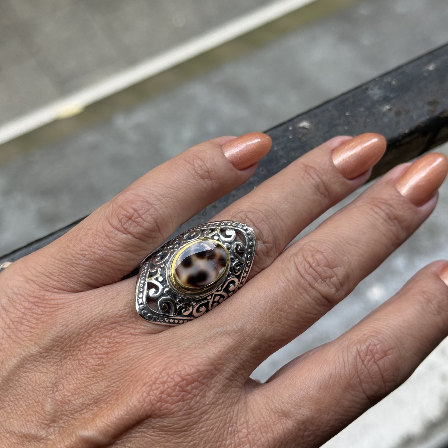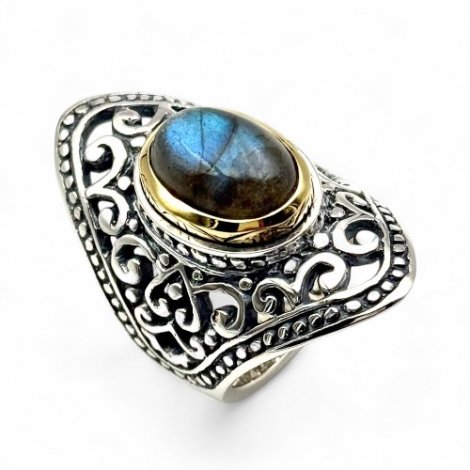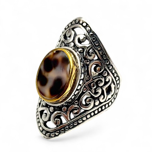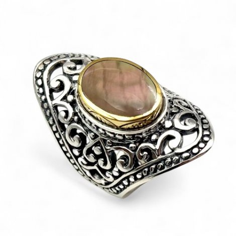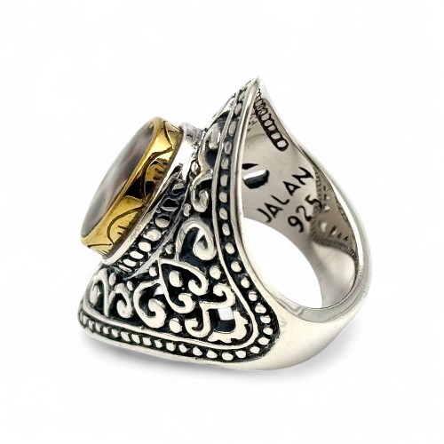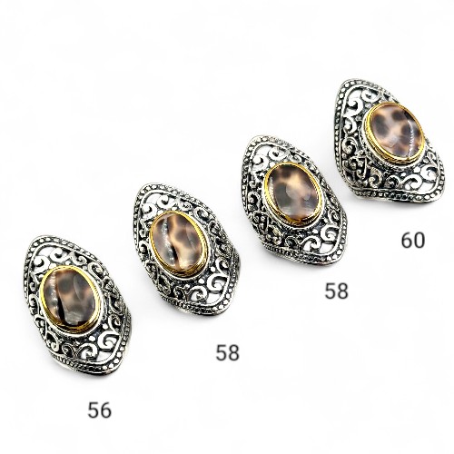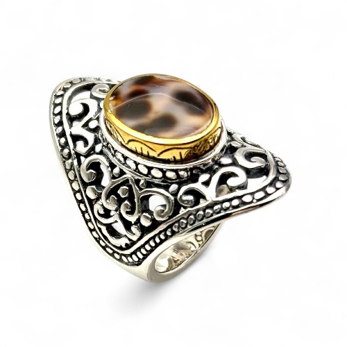 Bague en argent 925 avec pierre semi-précieuse ou naturelle sertie de laiton