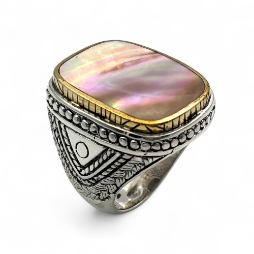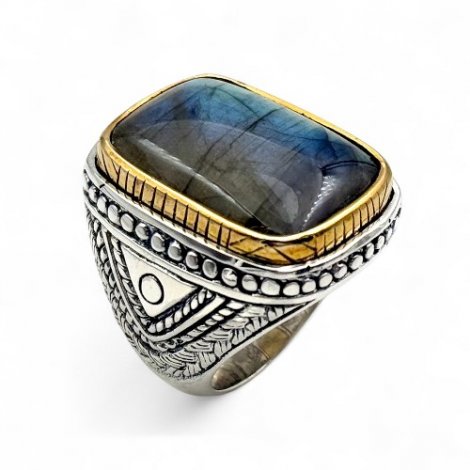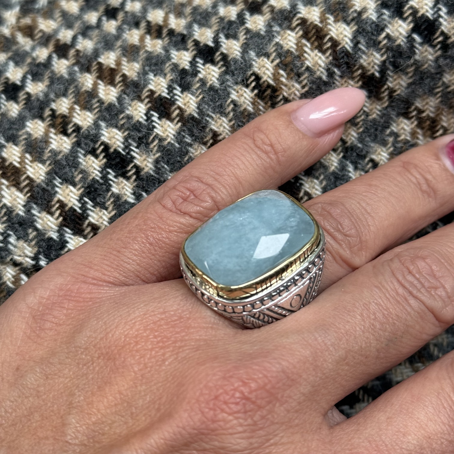 Bague Argent 925 et laiton avec pierres semi-précieuses