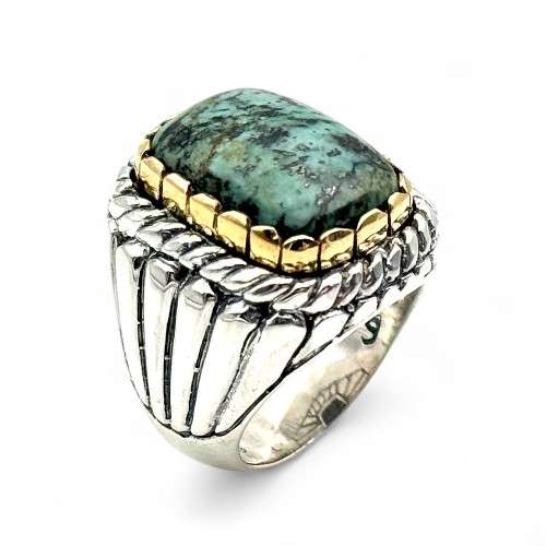 Bague Argent 925 et laiton avec Turquoise africaine