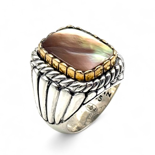 Bague Argent 925 et laiton avec pierres semi-précieuses