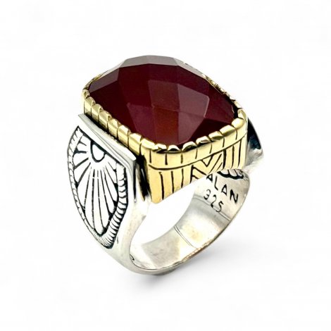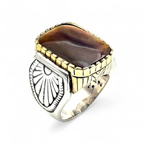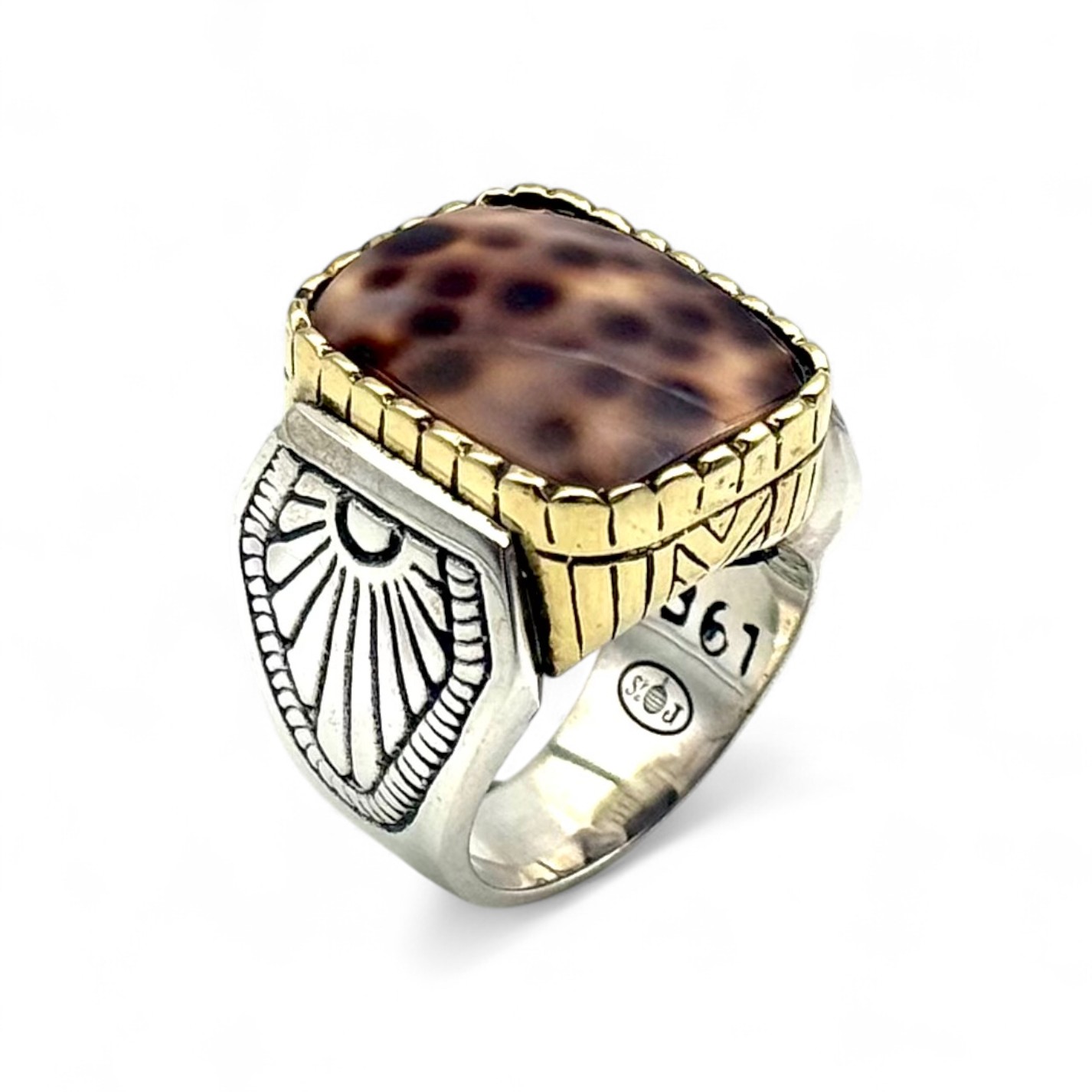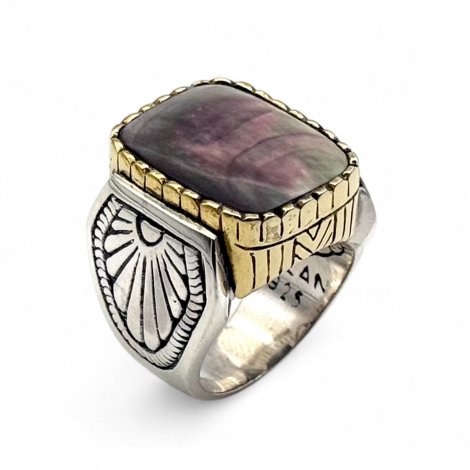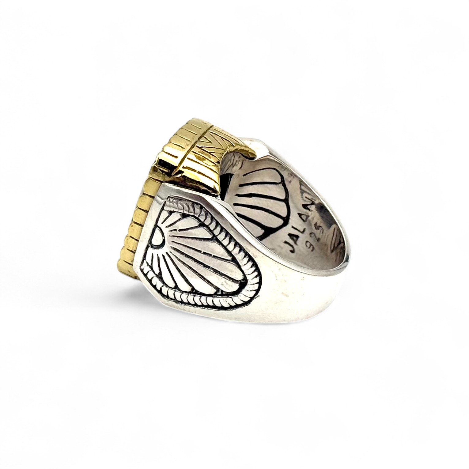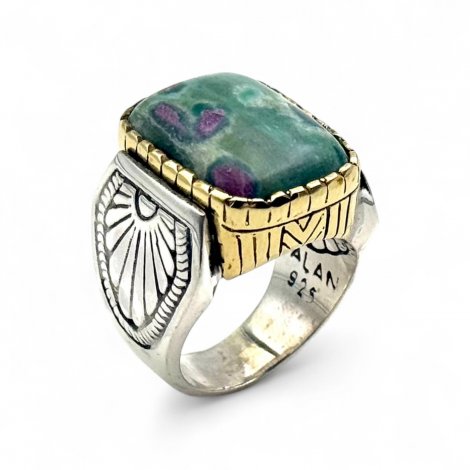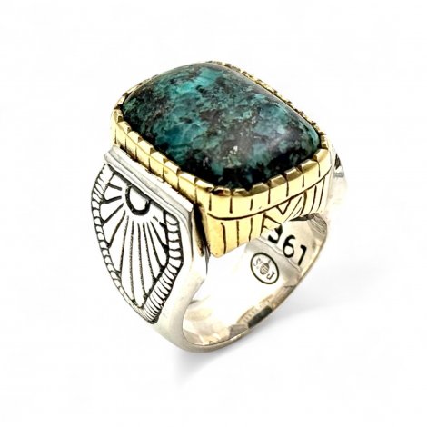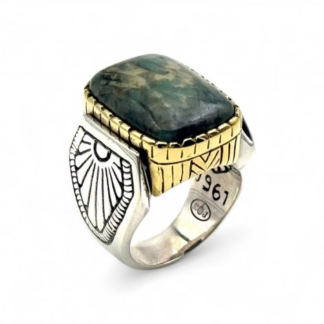 Bague en argent 925 avec pierre semi-précieuse ou naturelle sertie de laiton