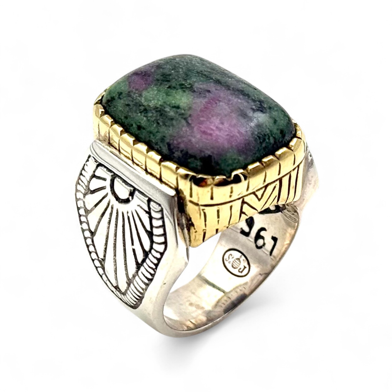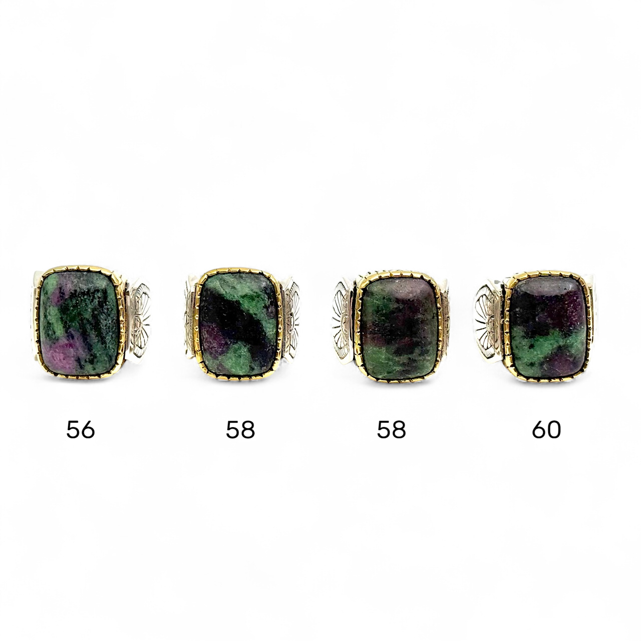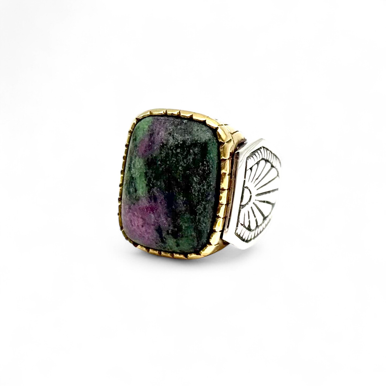 Bague Argent 925 et laiton avec pierres semi-précieuses