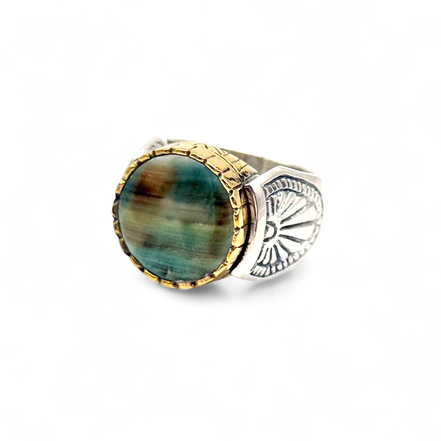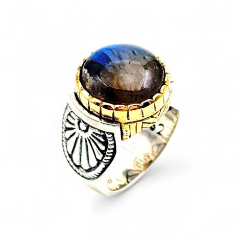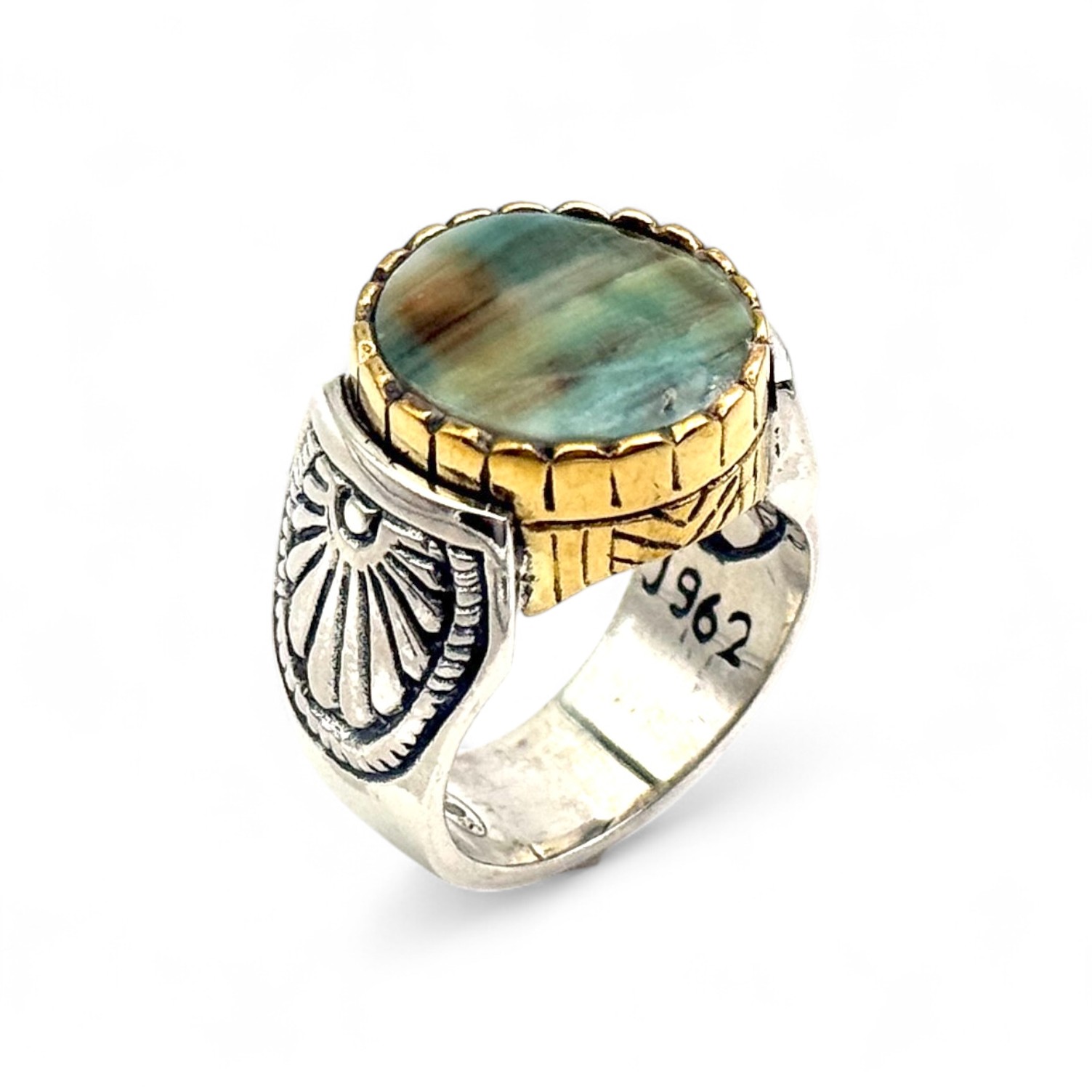 Bague en argent 925 avec pierre semi-précieuse ou naturelle sertie de laiton