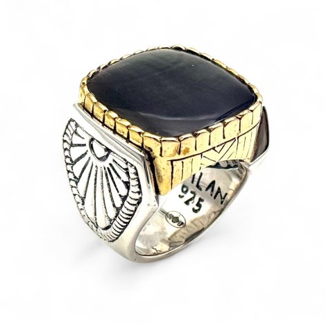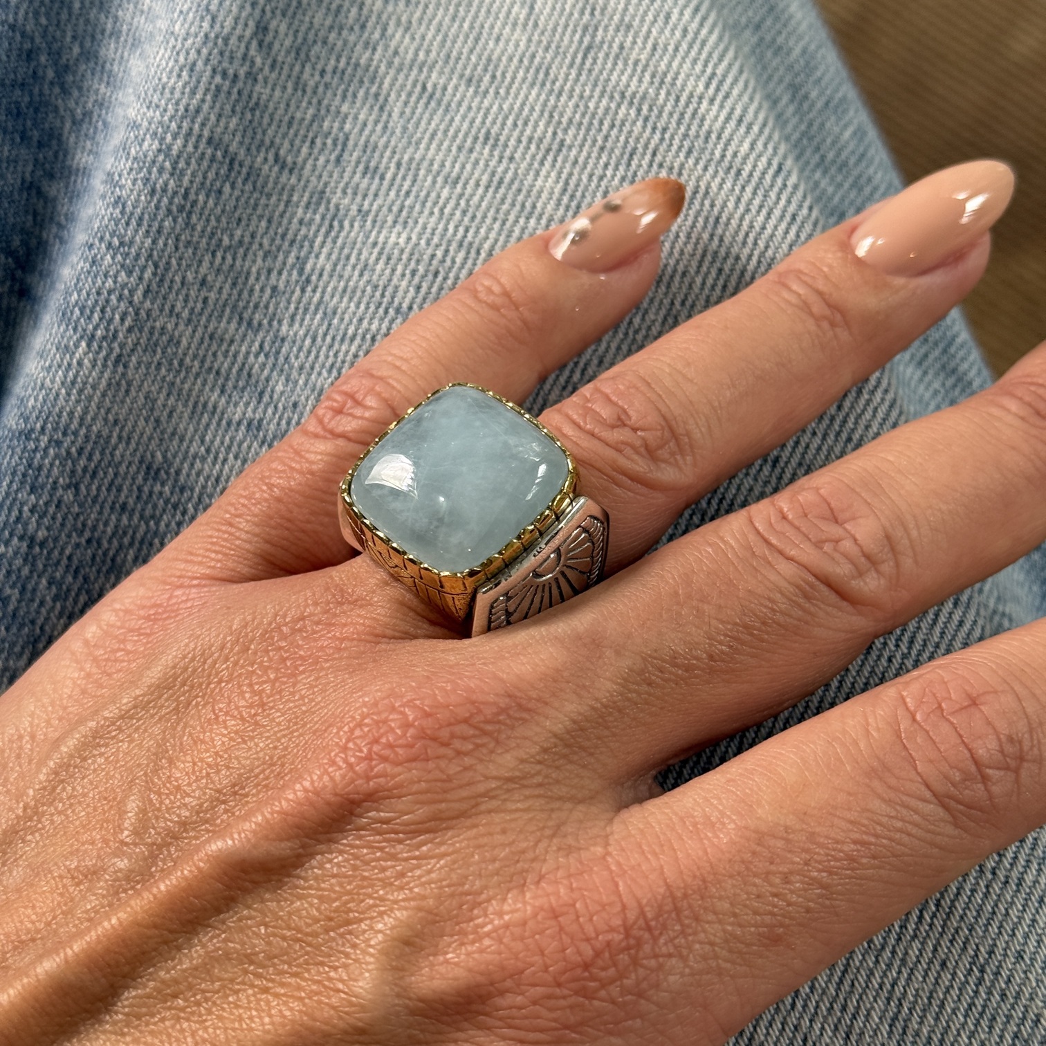 Bague Argent 925 et laiton avec pierres semi-précieuses