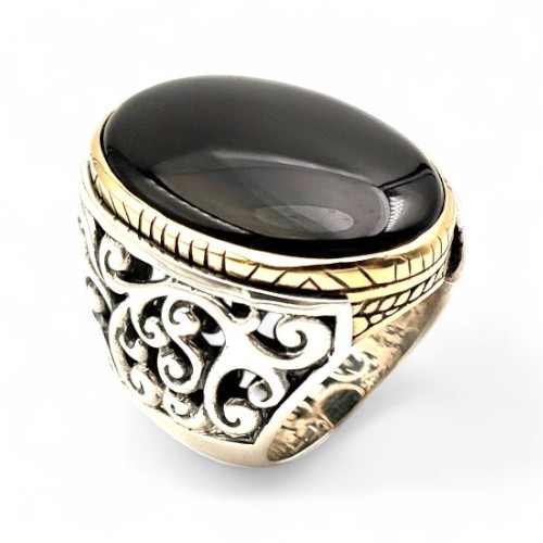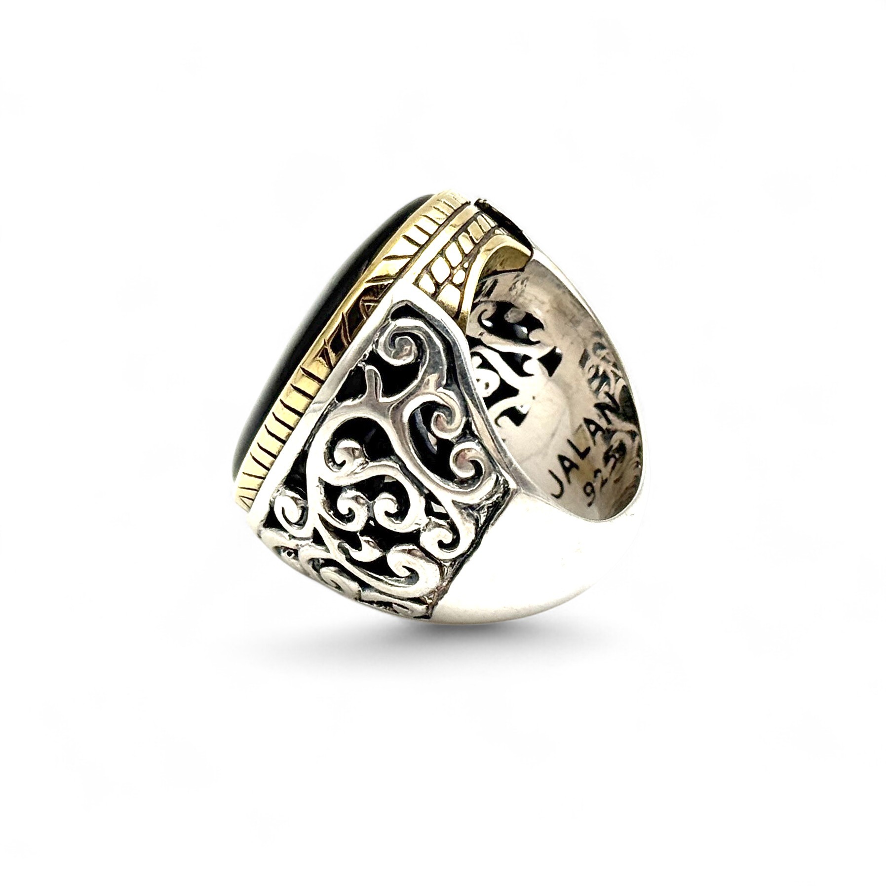 Bague en argent 925 avec pierre semi-précieuse ou naturelle sertie de laiton