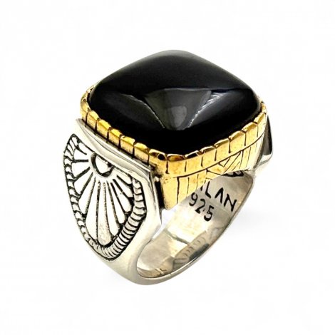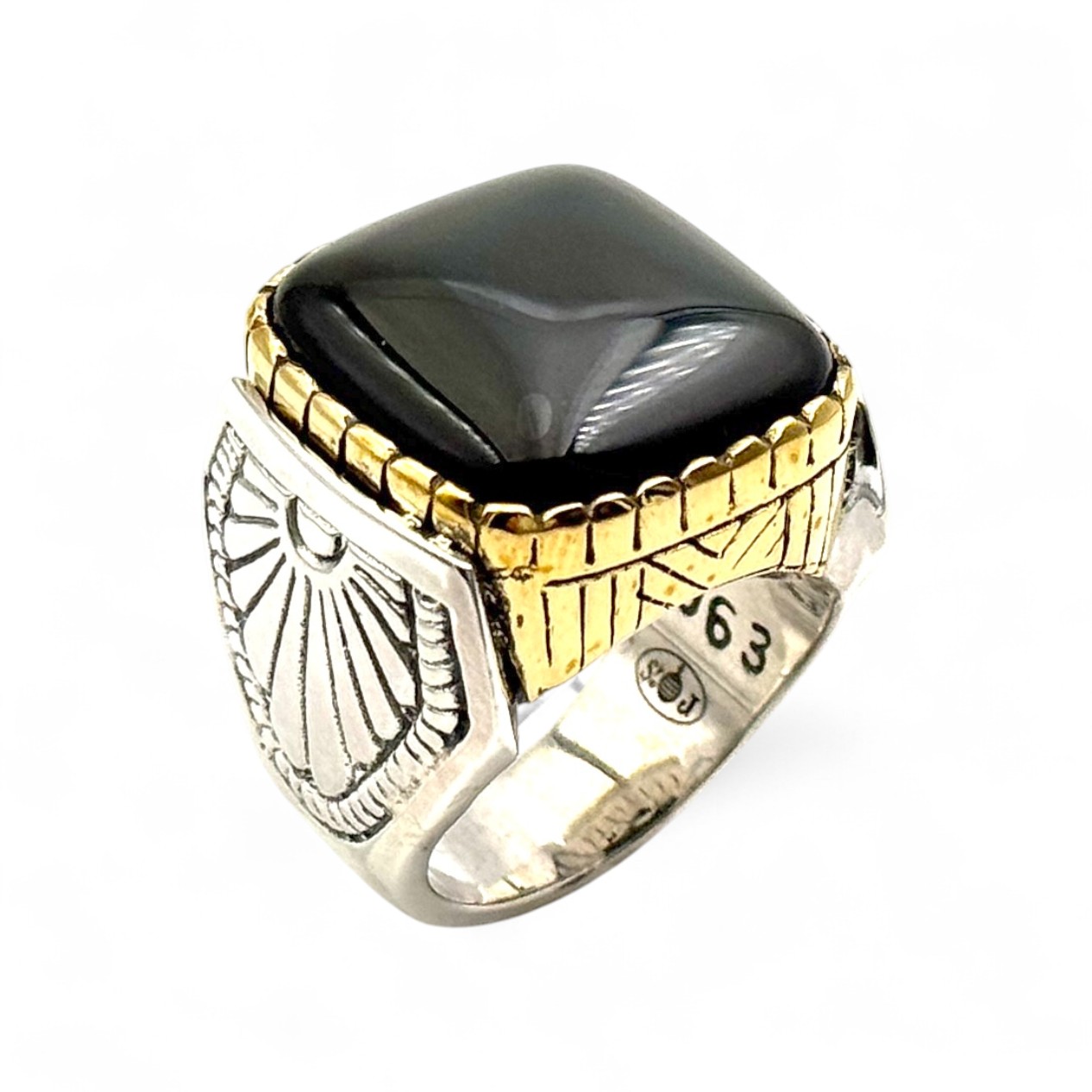 Bague en argent 925 avec pierre semi-précieuse sertie de laiton