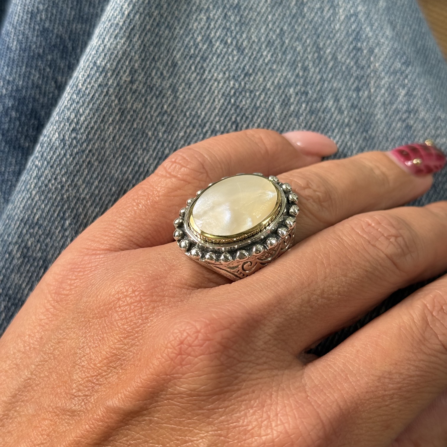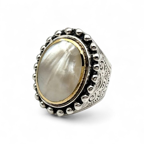 Bague en argent 925 avec nacre blanche sertie de laiton