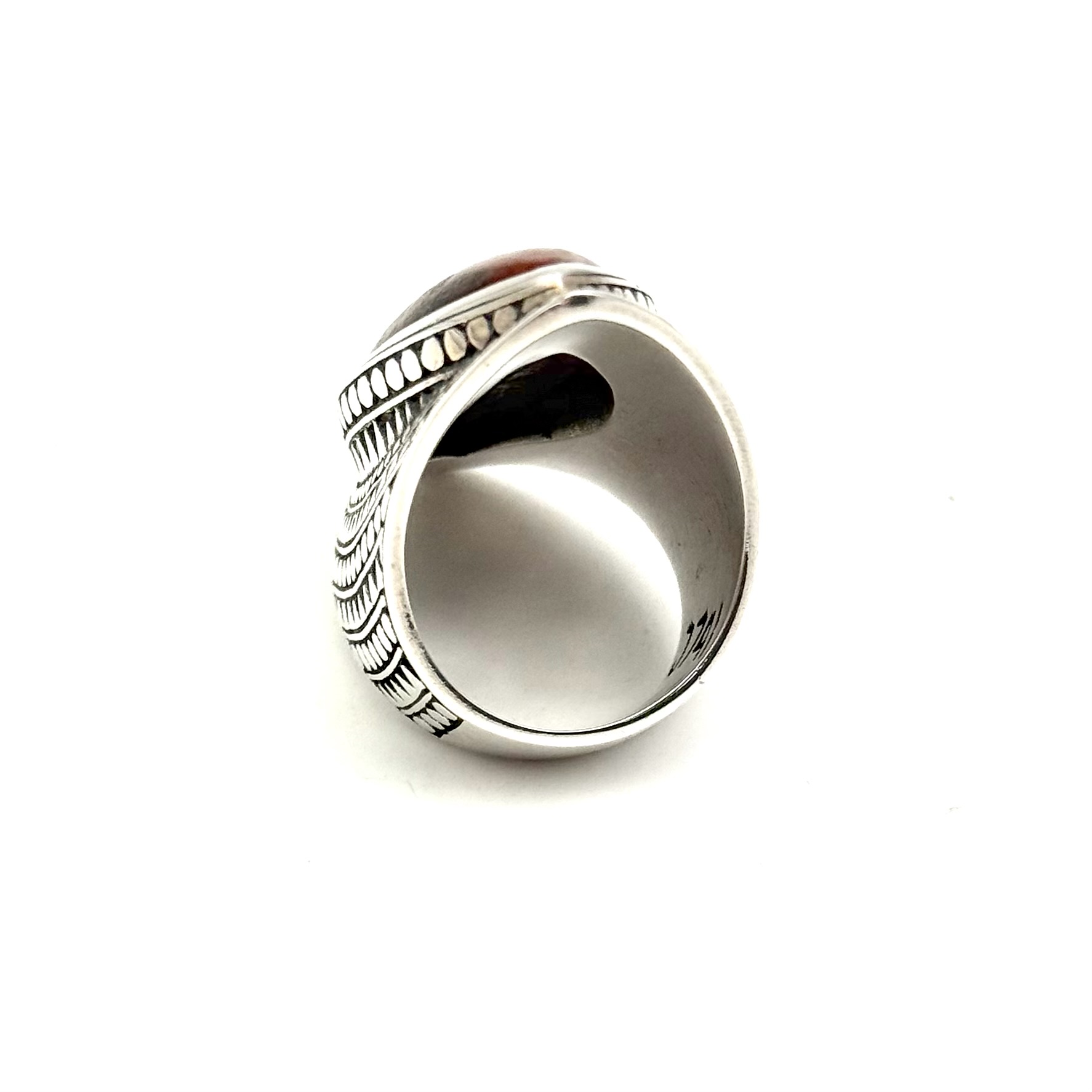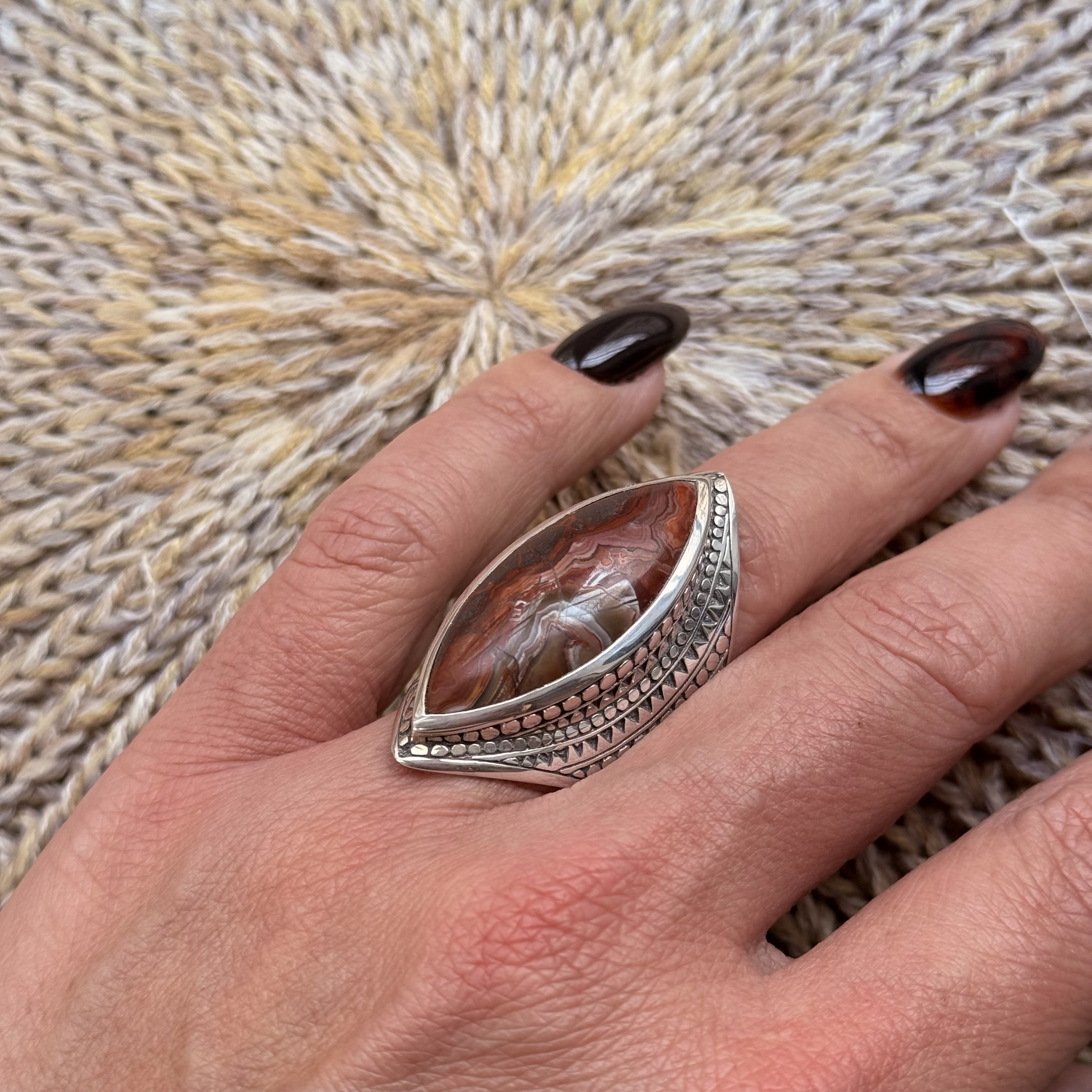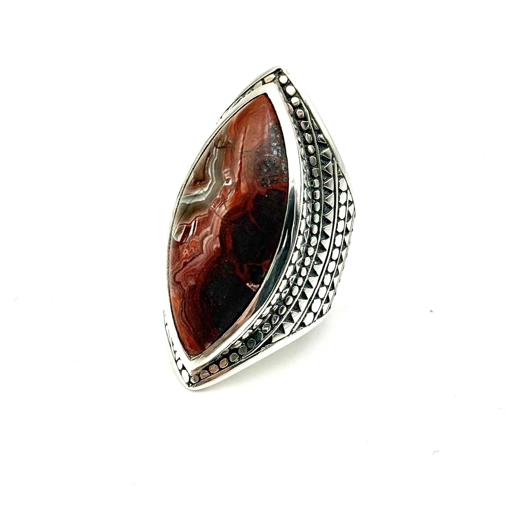 Bague en argent 925 sertie d'une agate laguna de forme marquise 15x35cm