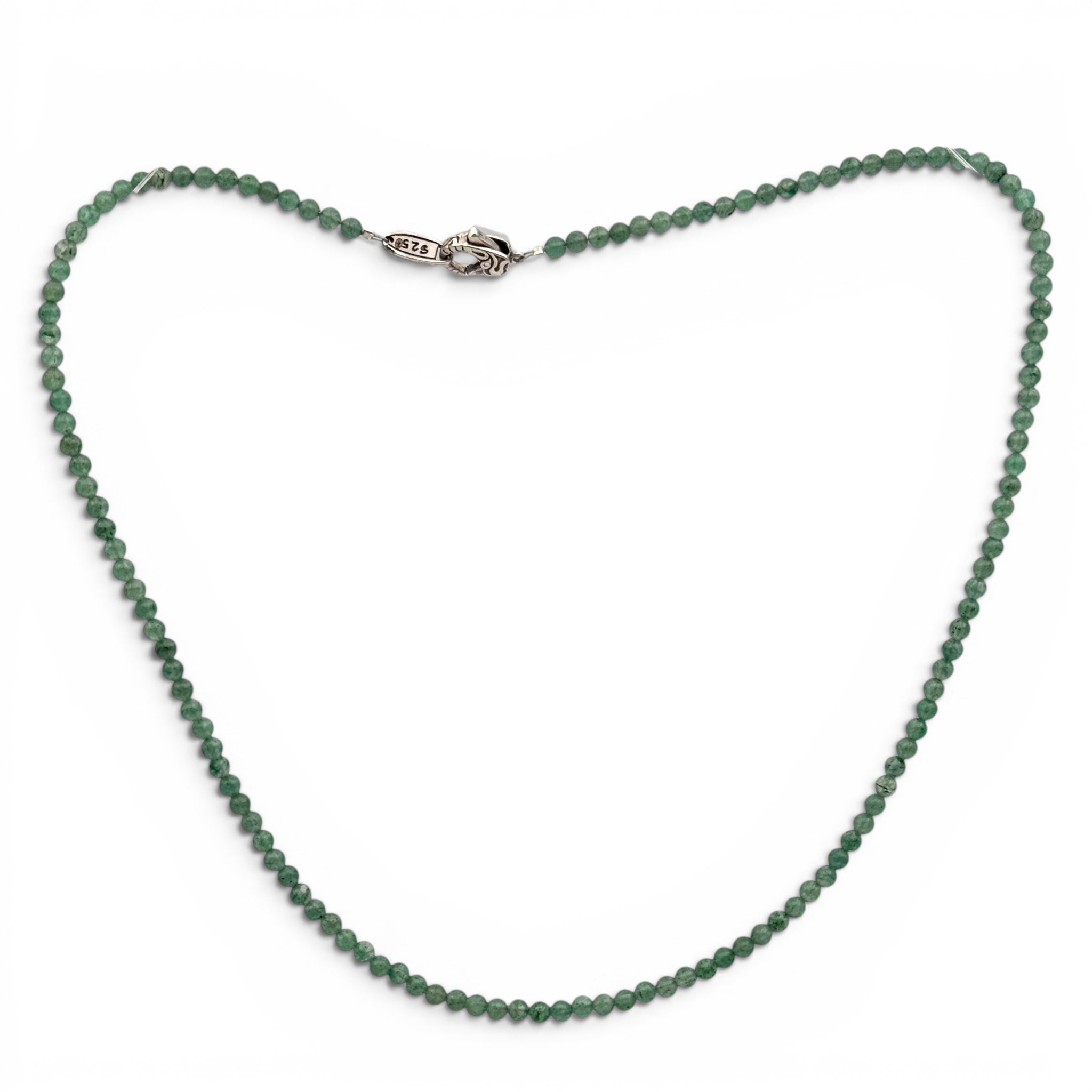 Collier sur fil cablé composé de perles d'aventurine de 3mm de diamètre.