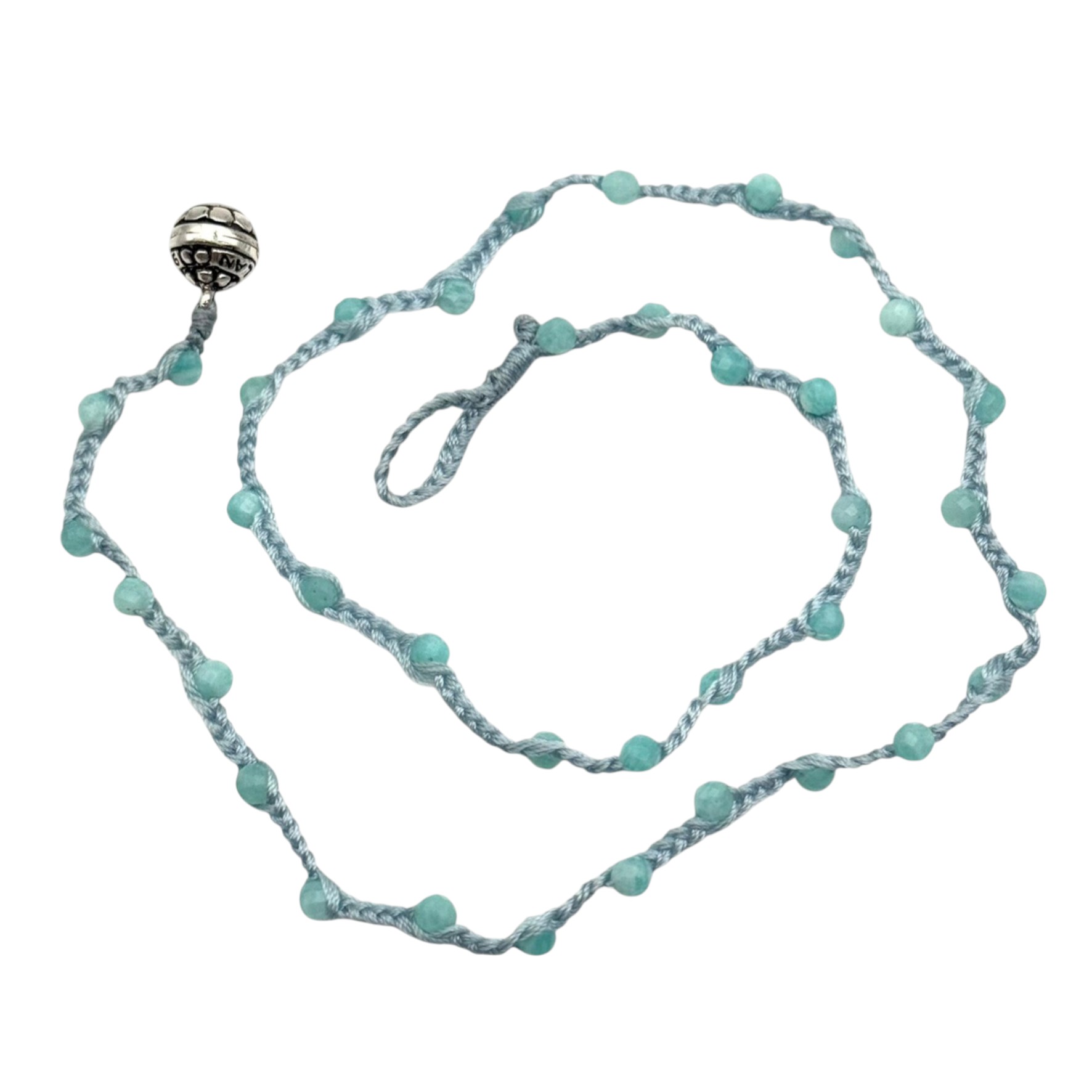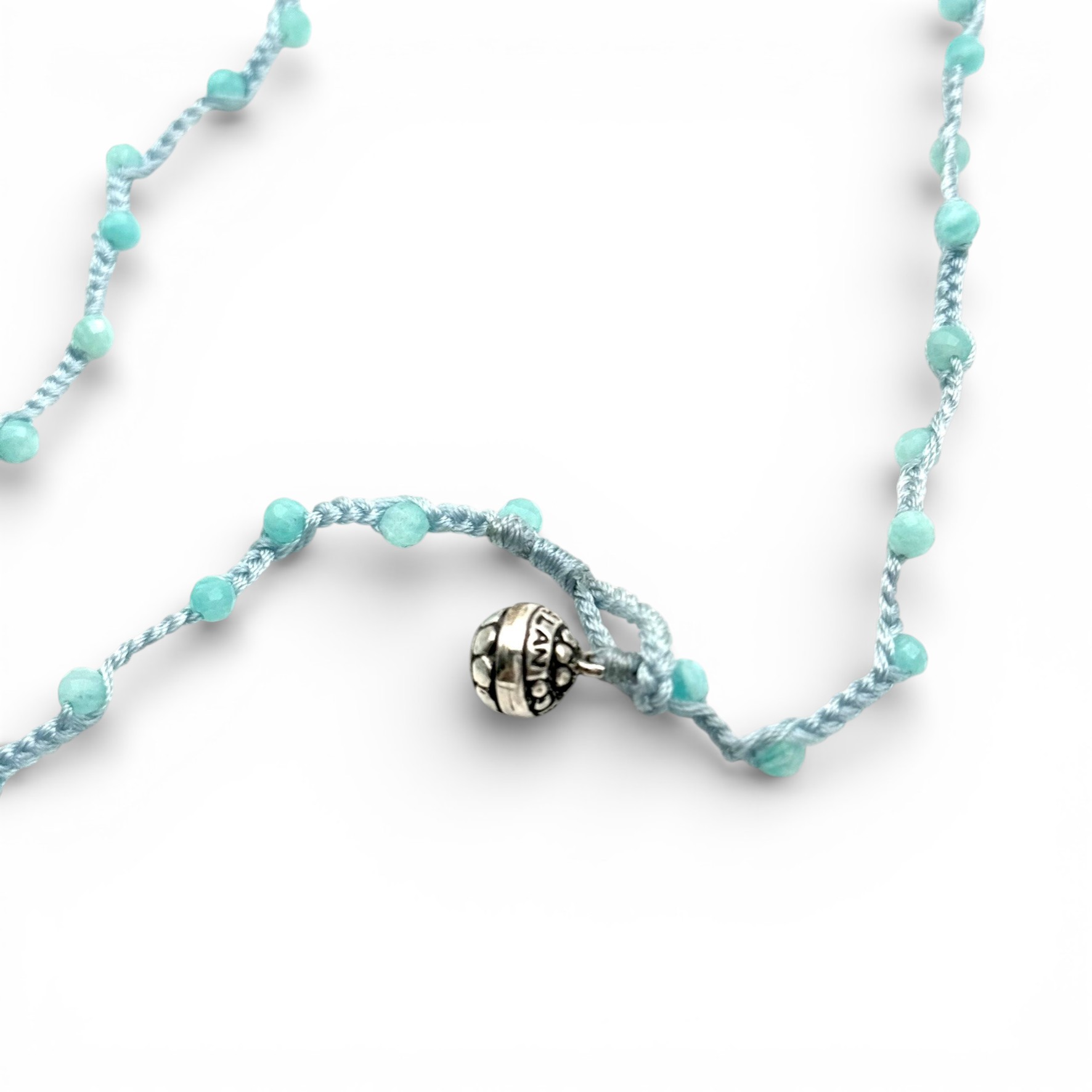 Collier sur lien tressé composé de perles d'amazonite facettées de 3mm de diamètre