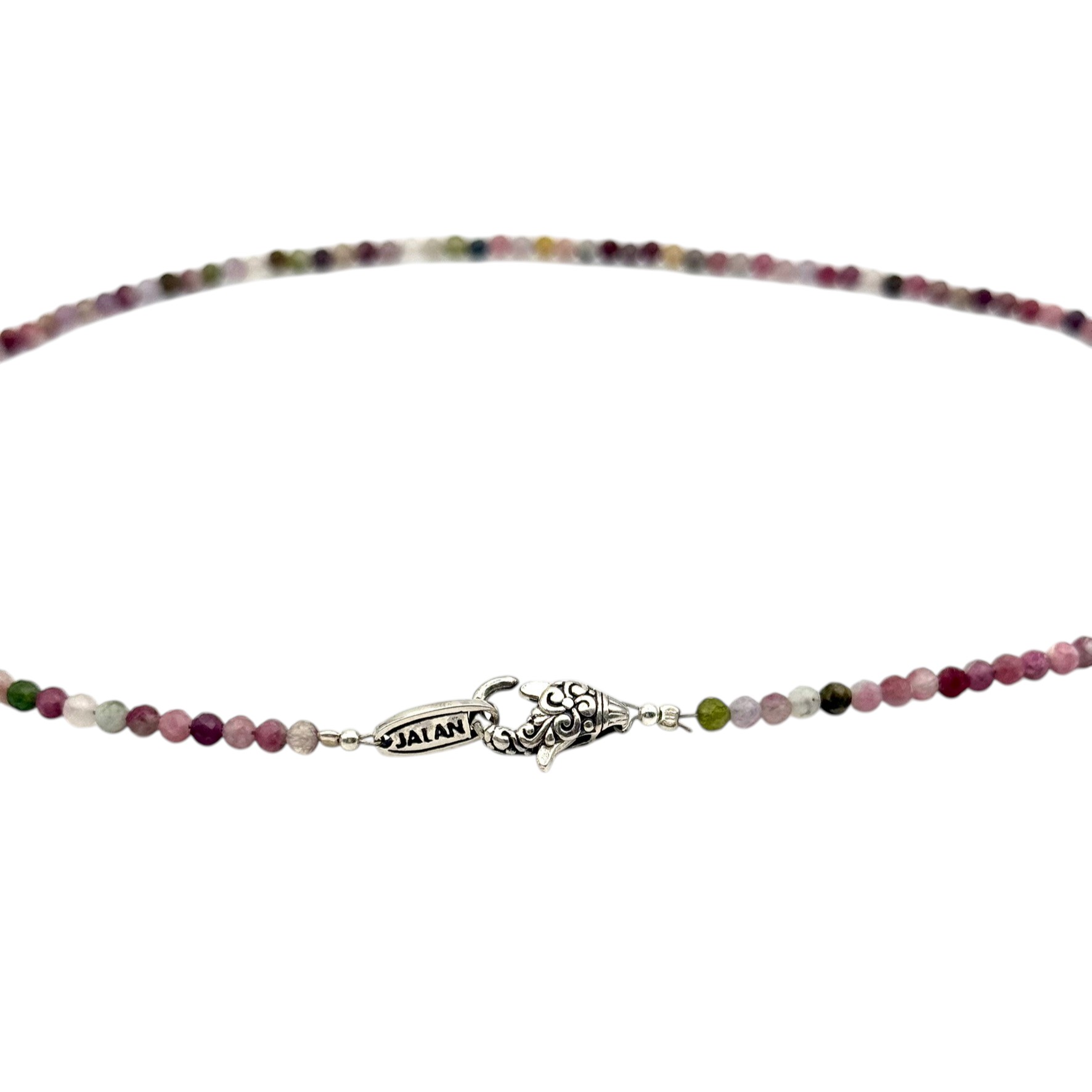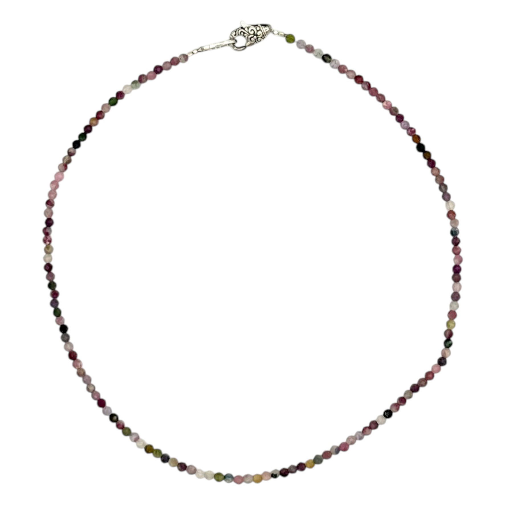 Collier sur fil cablé composé de perles de tourmaline facettées de 3mm de diamètre.