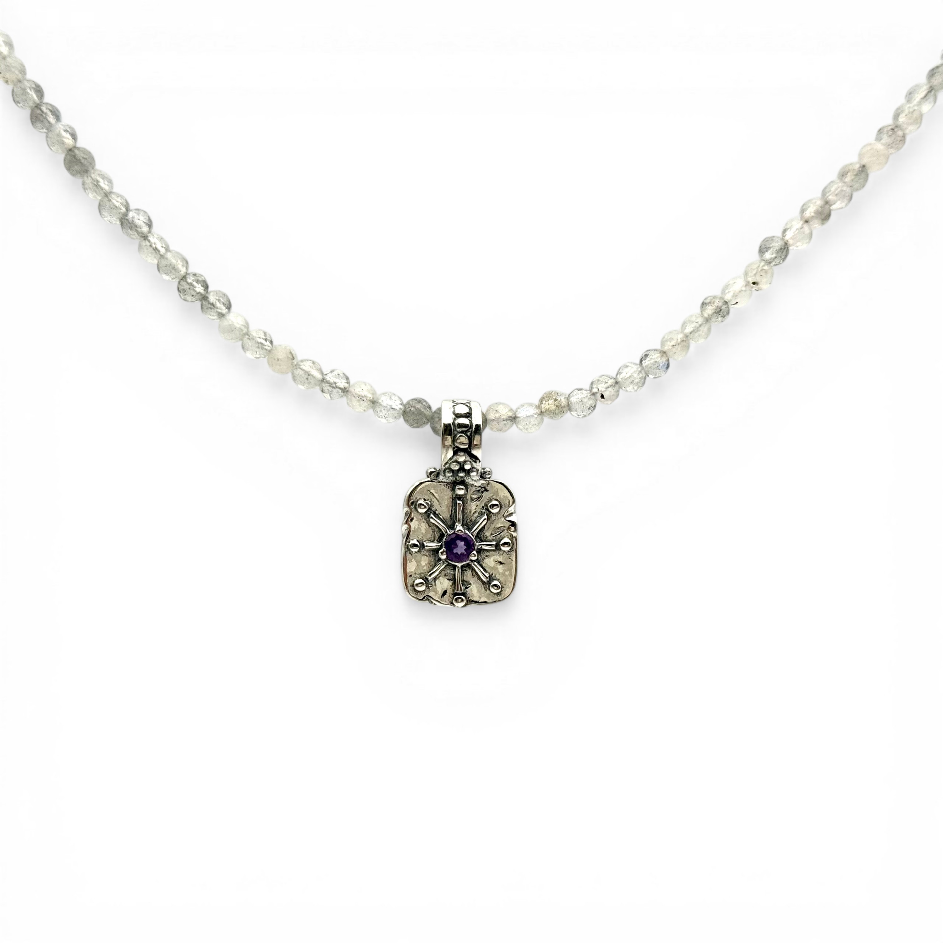 Petit pendentif en argent 925 serti d'une pierre semi-précieuse facettée de 3mm de diamètre