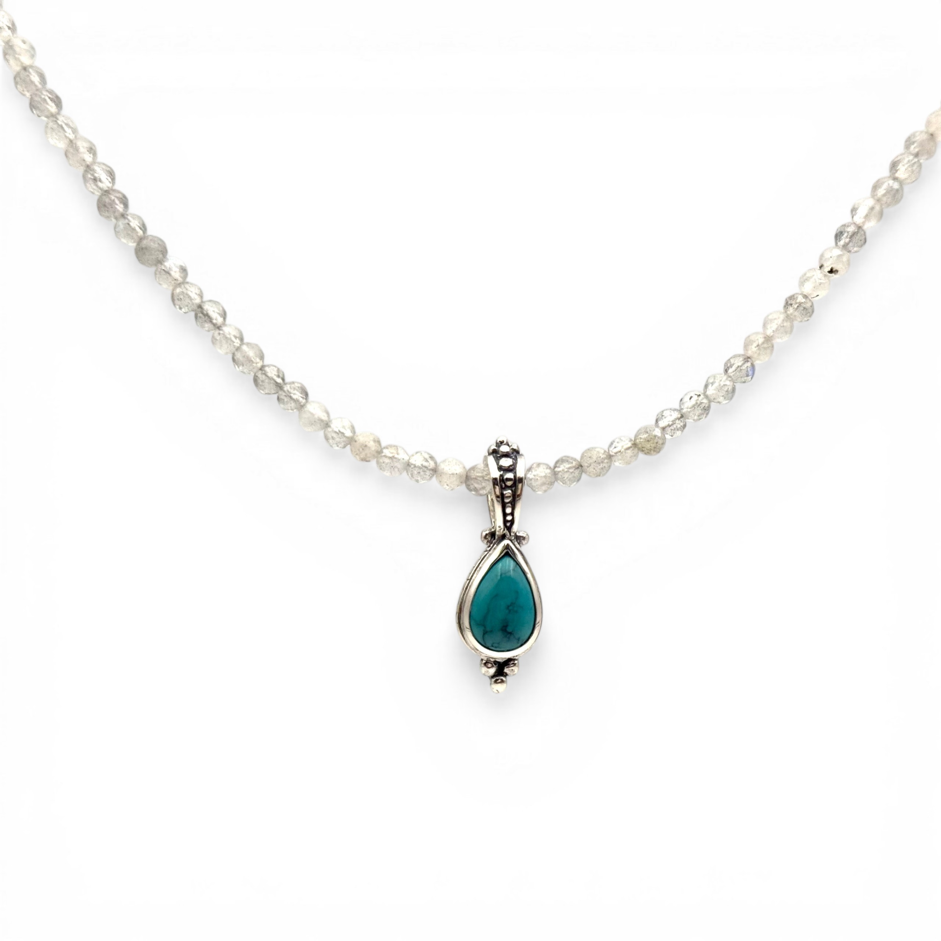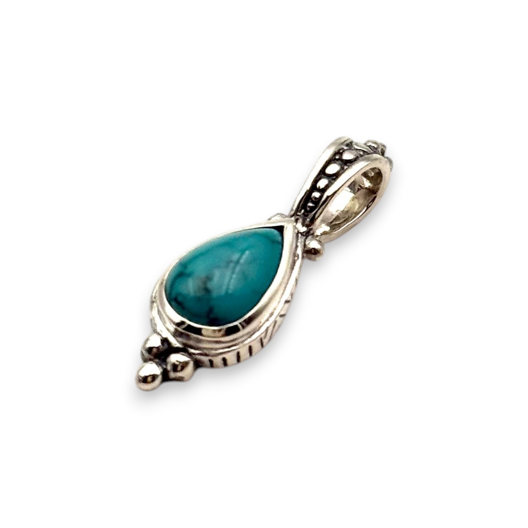 Petit pendentif en argent 925 serti d'une turquoise en forme de goutte