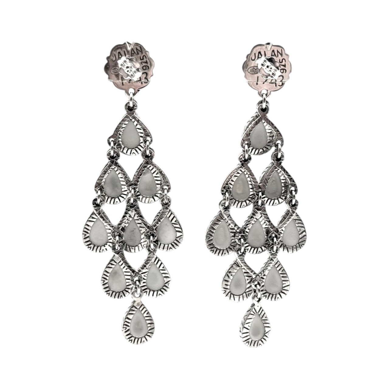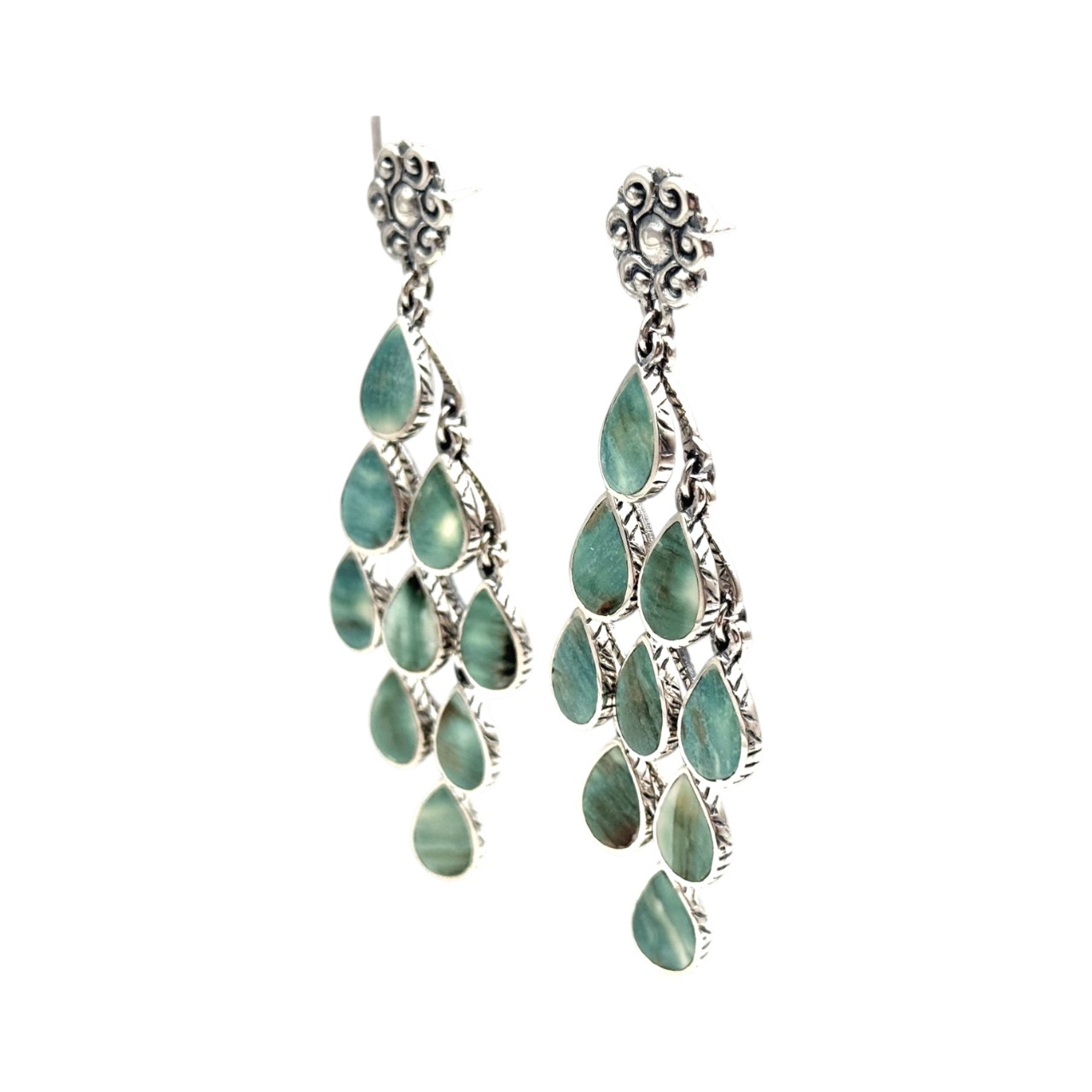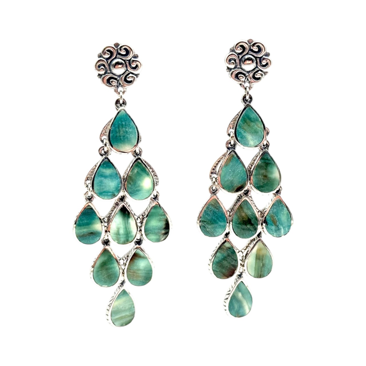 Boucles d'oreilles en argent 925 composées de 9 gouttes serties de coquillage vert