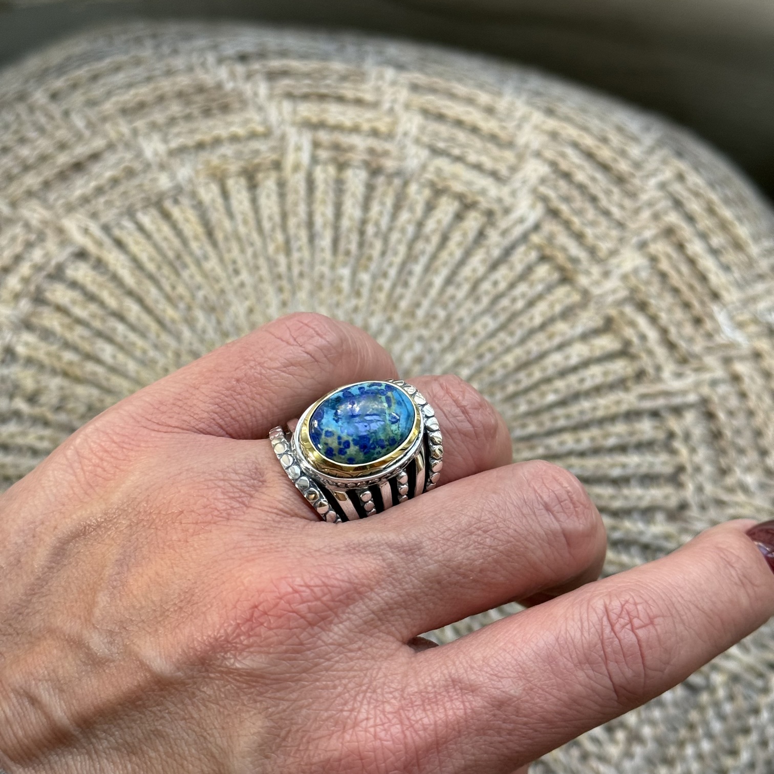 Bague Argent 925 et laiton avec pierres semi-précieuses