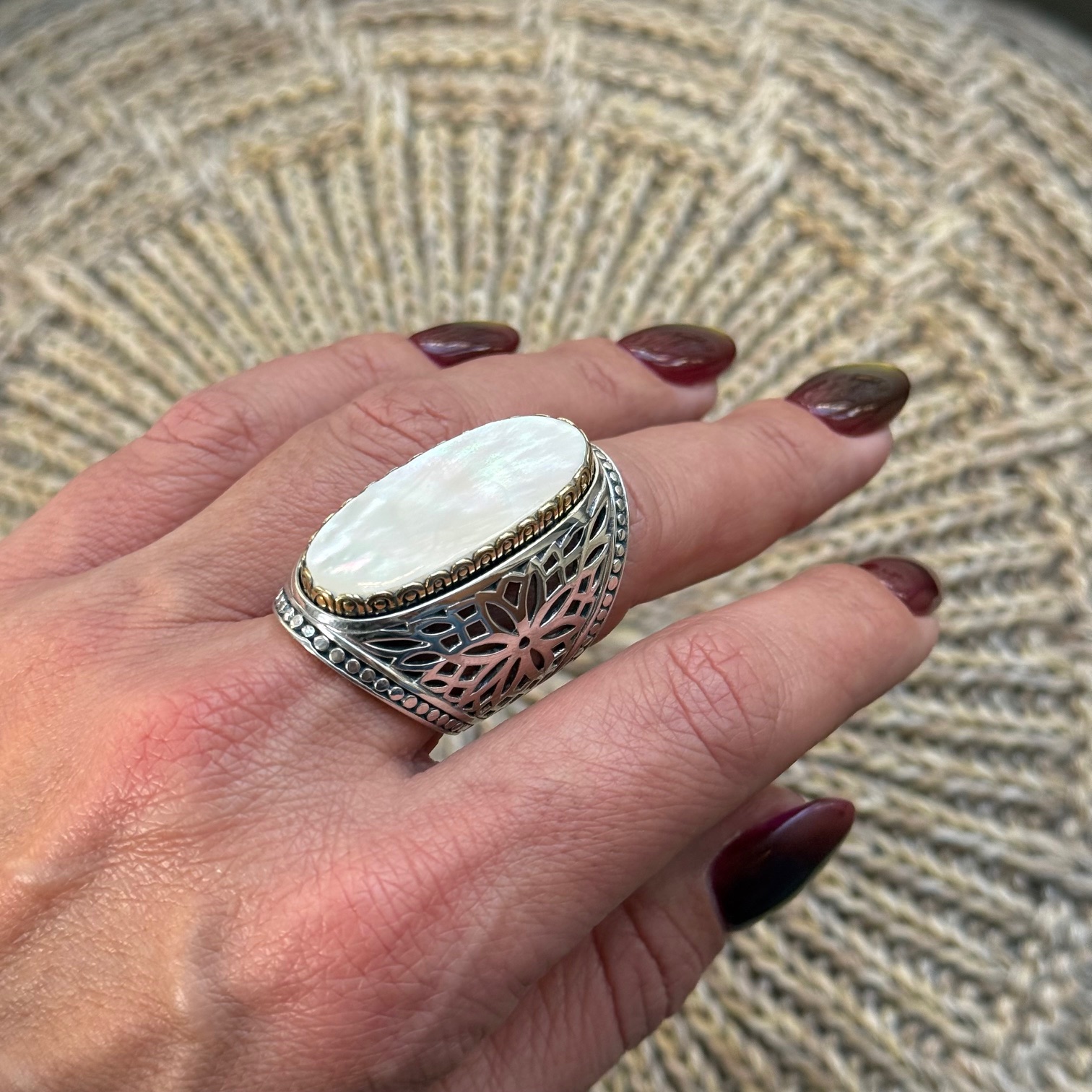 Bague Argent 925 et laiton avec pierres semi-précieuses