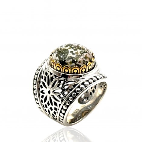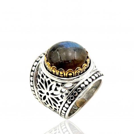 Bague Argent 925 et laiton avec pierres semi-précieuses