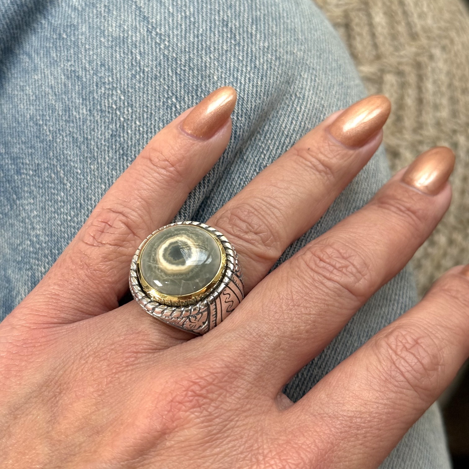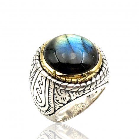 Bague Argent 925 et laiton avec pierres semi-précieuses