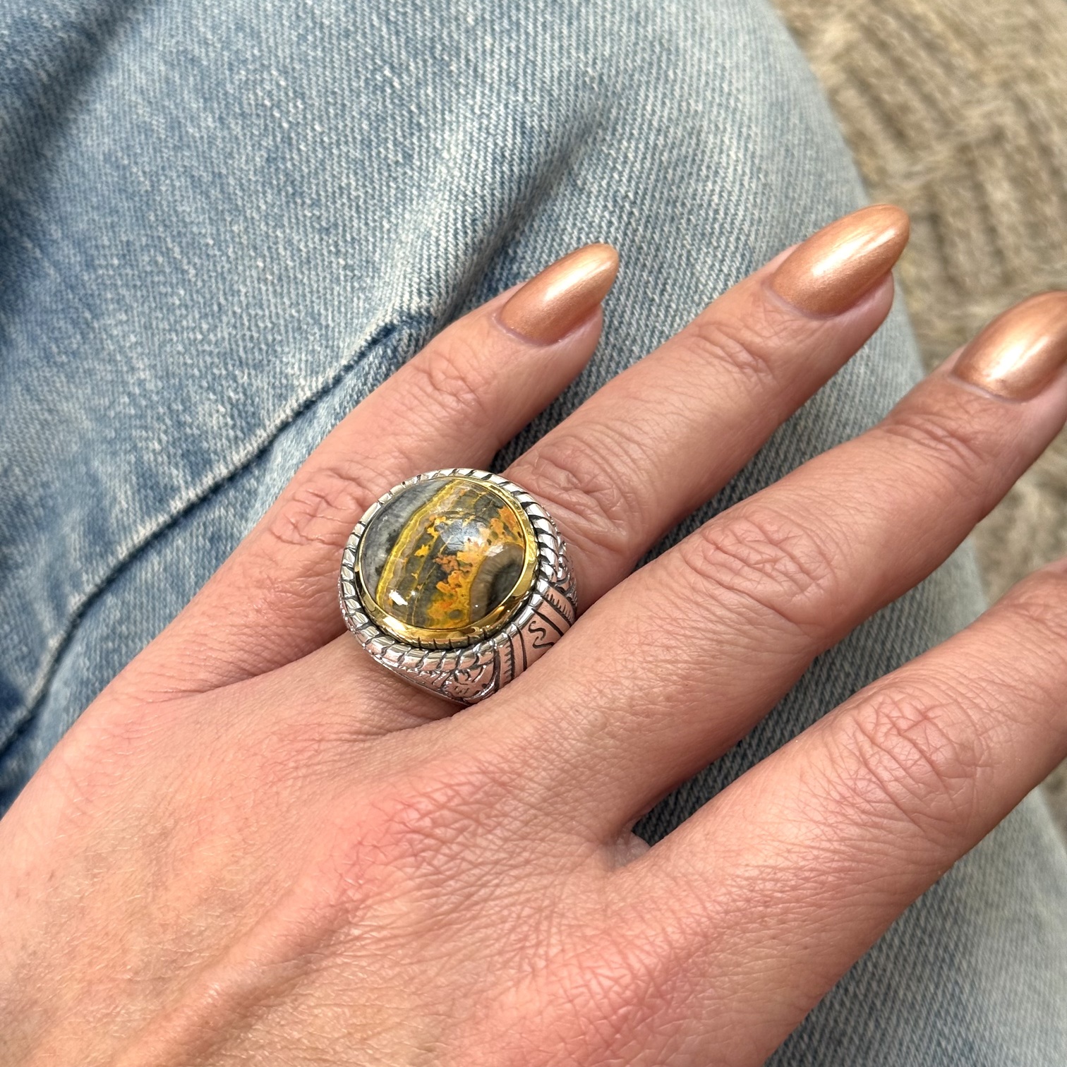 Bague en argent 925 avec pierre semi précieuse sertie de laiton